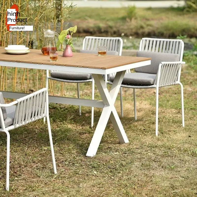 Constructed from high-quality materials, the GAOPIN Cazadores Outdoor Table and Chair Set is designed to withstand the elements. The frame is crafted from strong aluminum, known for its lightweight yet durable properties. The elegant rattan weaving and seat cushions are made from premium outdoor fabrics that resist sun damage and wear, ensuring long-lasting comfort and style.