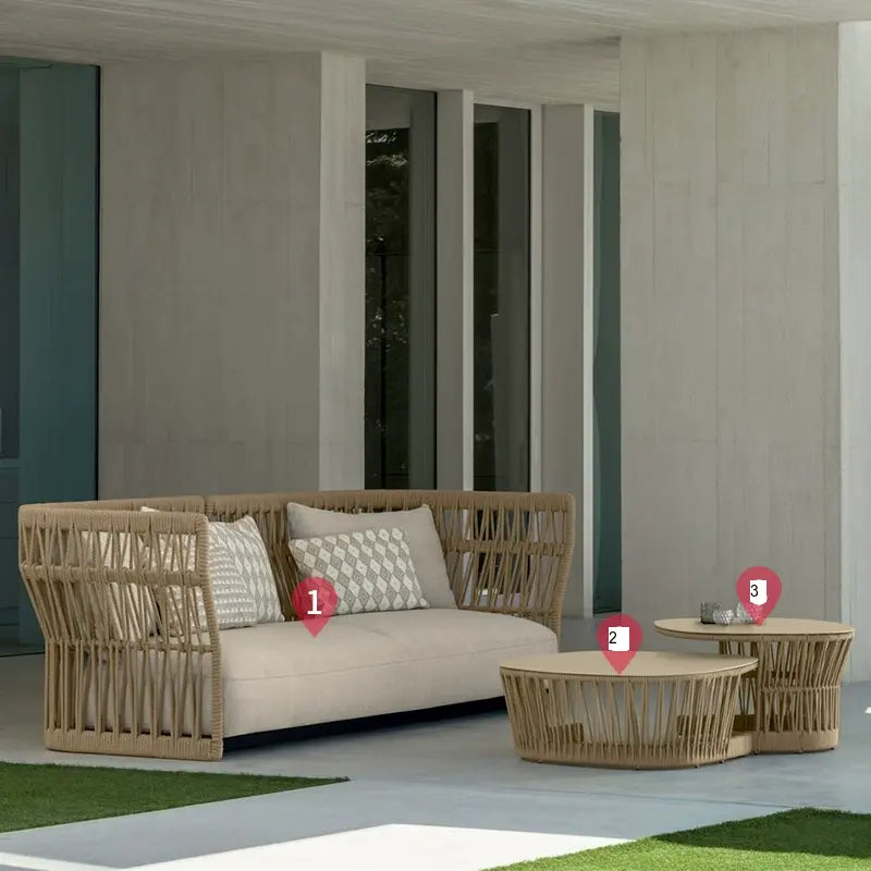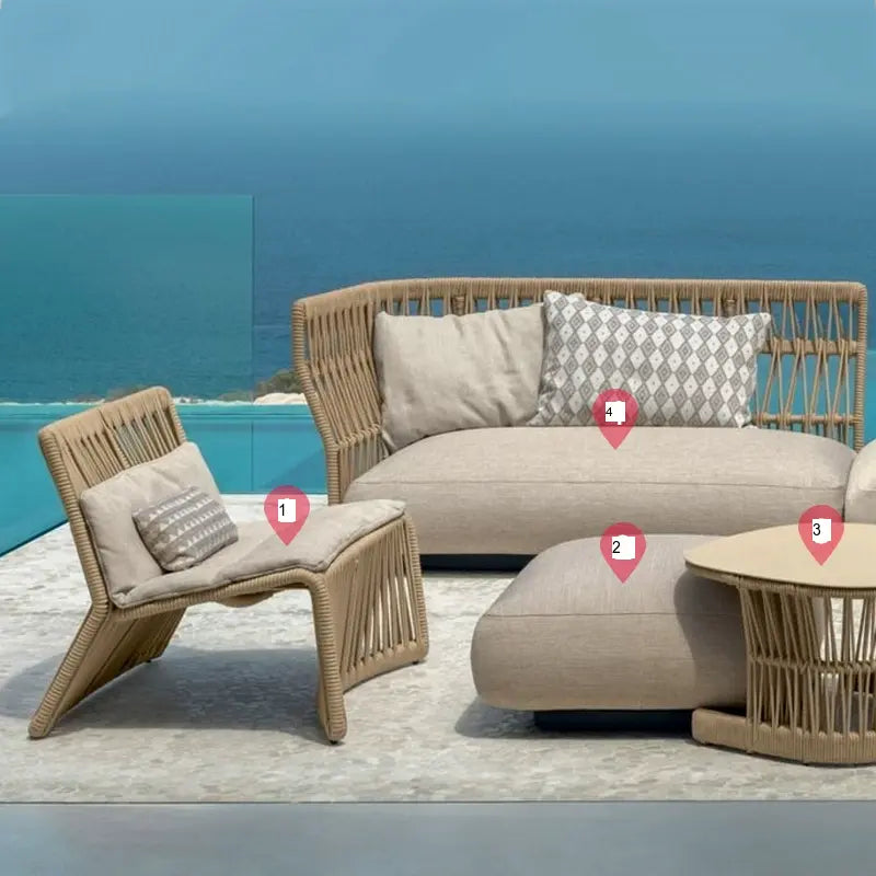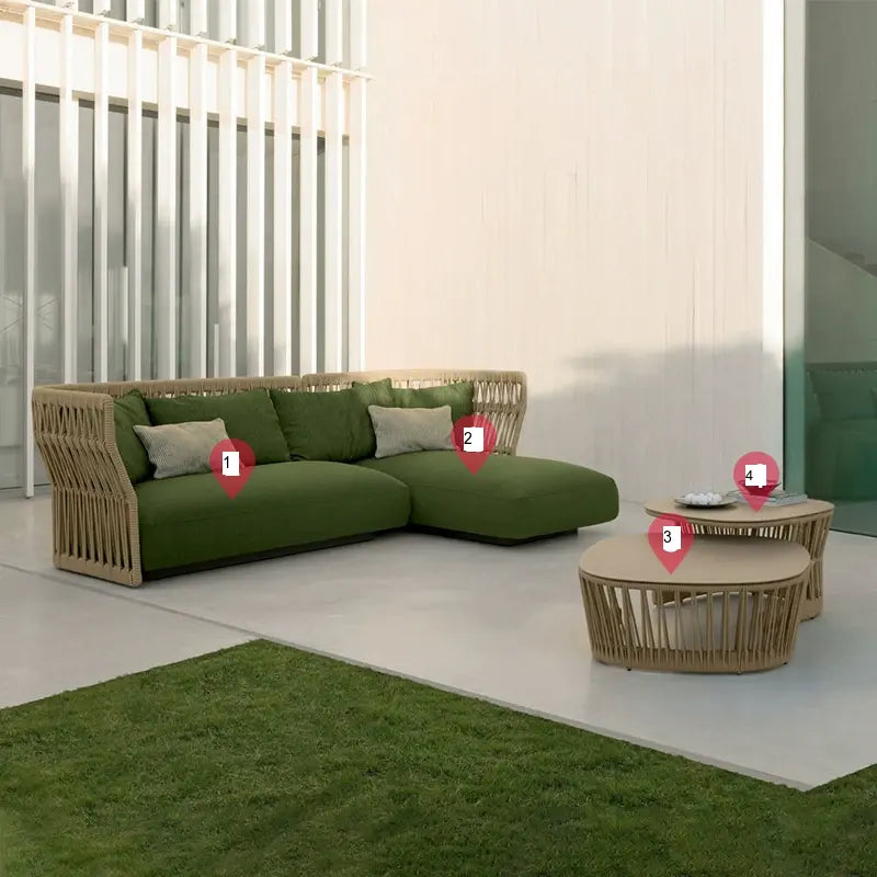 The GAOPIN Mateo Outdoor Sofa Set features a robust frame crafted from high-quality synthetic rope and powder-coated aluminum, offering both durability and elegance. The hand-woven rope design provides a modern aesthetic while maintaining a natural, breathable texture. The plush cushions provide an inviting softness, making it ideal for lounging or entertaining. Upholstered in a fade-resistant fabric, these cushions maintain their vibrant colors even under prolonged sun exposure, ensuring long-lasting visual appeal.
