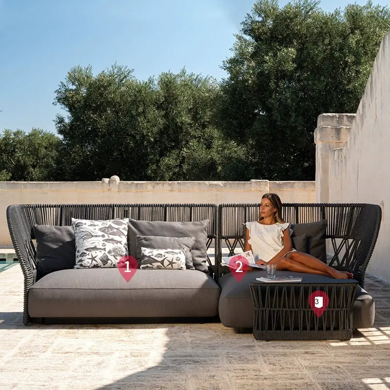 This sofa set's versatile modular design promotes sociability, allowing multiple configurations that can include corner arrangements or expansive seating setups, making it the perfect choice for gatherings of all sizes. Whether you’re hosting a barbecue, enjoying a quiet evening under the stars, or entertaining guests, the Mateo set adapts to your needs while adding a touch of sophistication to your outdoor space.