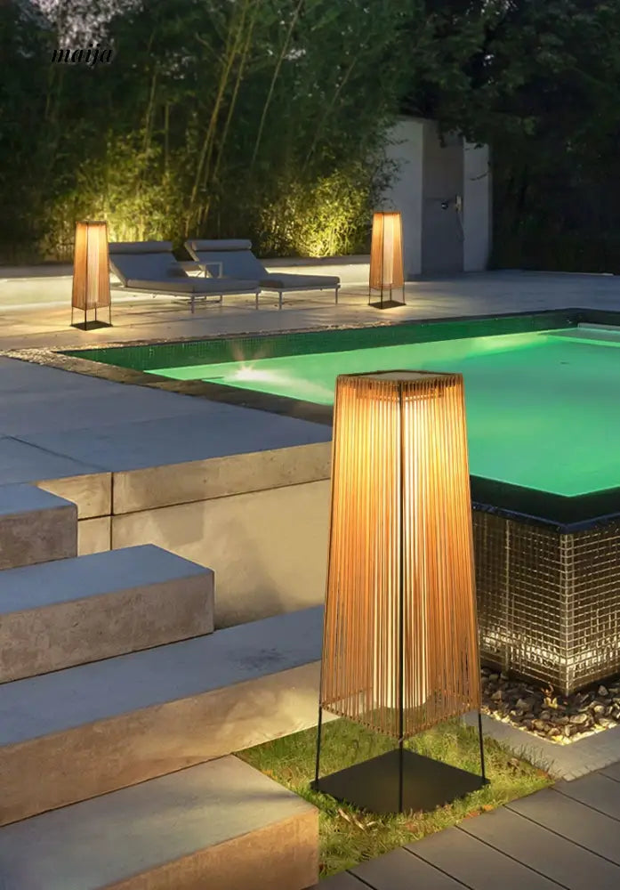 Durable Materials: Constructed with a sturdy stainless steel body and a unique rubber rattan lampshade, these lamps are not only stylish but also built to withstand the elements, holding an IP65 protection level for outdoor resilience.