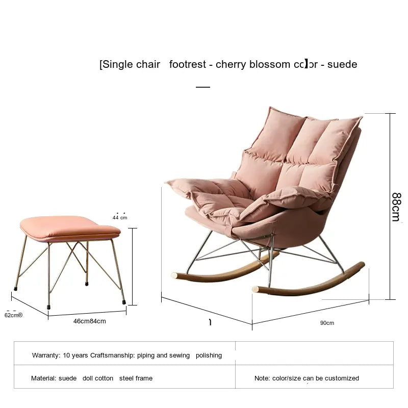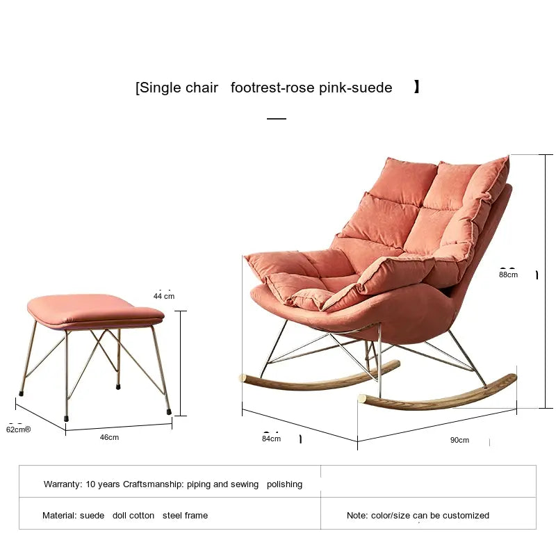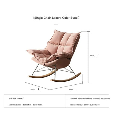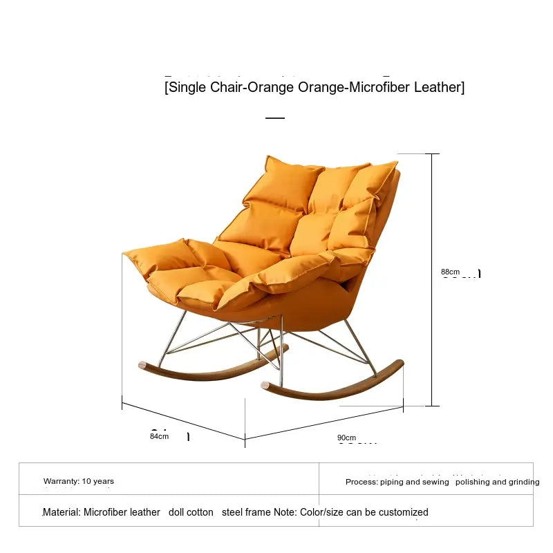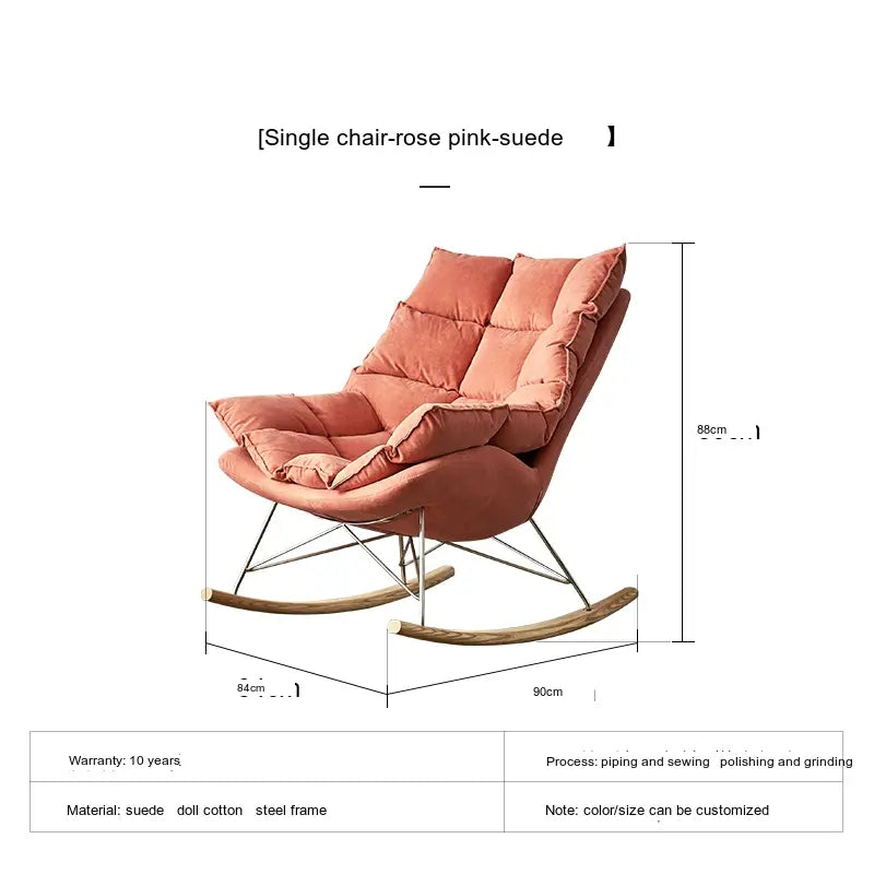 Crafted using premium deerskin velvet and microfiber leather, the Orion rocking chair envelops you in a cocoon of softness. It is specifically designed to support relaxation as you sway gently in its embrace. Whether you're reading a book, watching television, or simply enjoying a moment of tranquility, the plush upholstery cushions your body and provides an unparalleled seating experience.