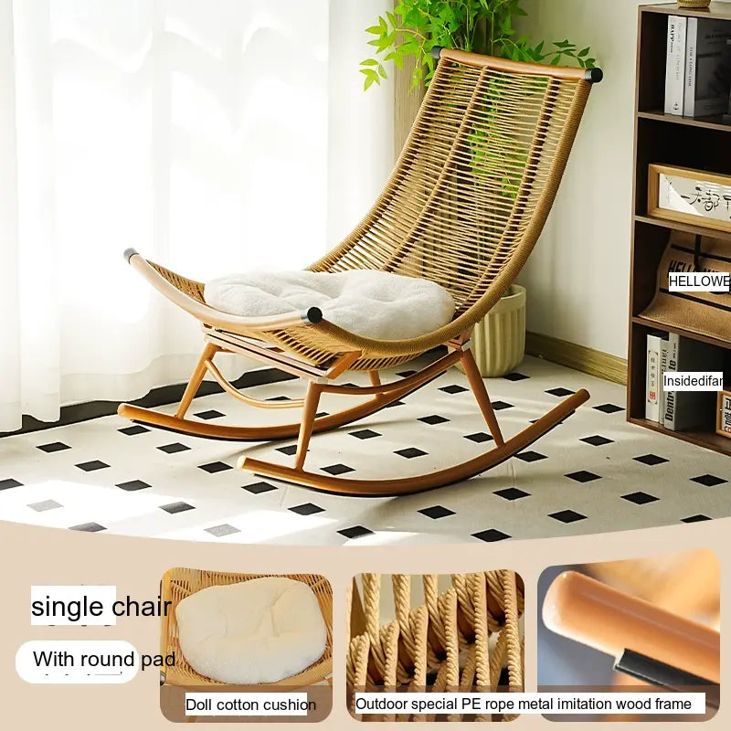 - Pillow Moon Rocking Chair - PE Hand-woven Rattan