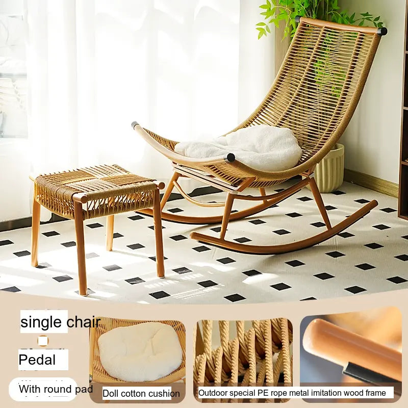 - Crescent Rocking Chair + Cushion + Footstool - PE Hand-woven Rattan