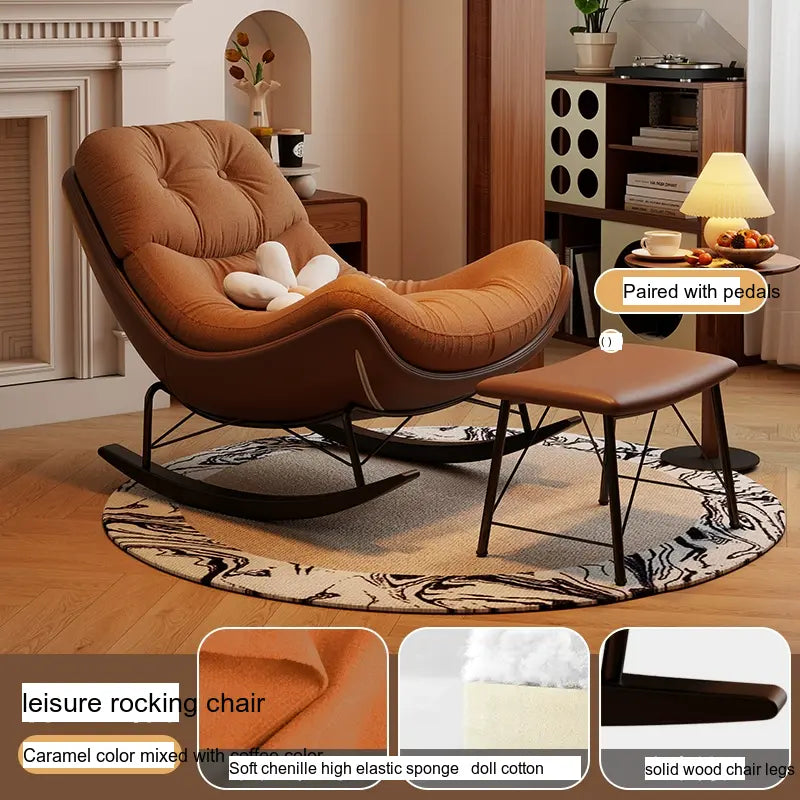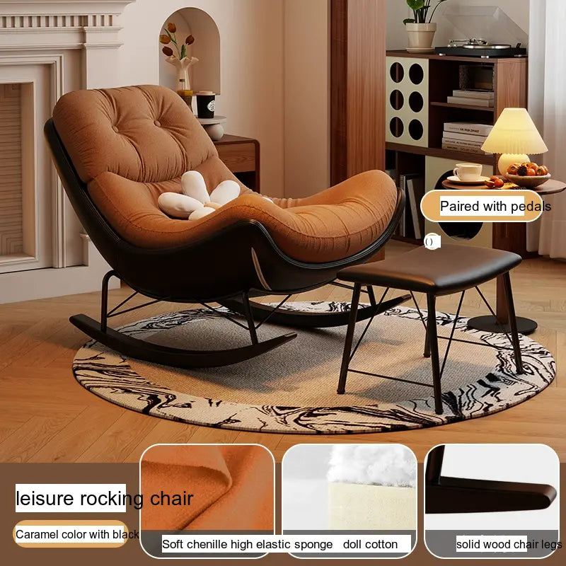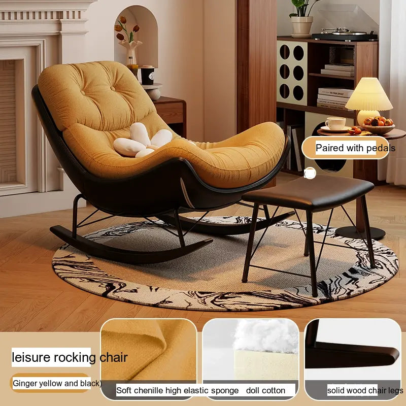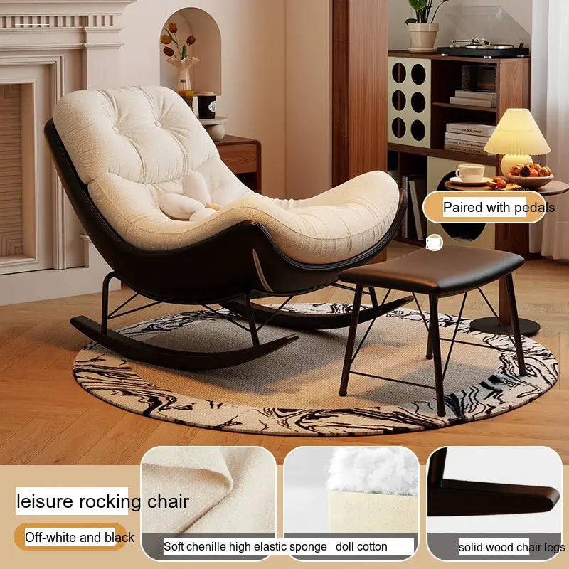 Transform your living space with the elegance and comfort of the MENILE Jasper Cozy Cushioned Rocking Chair. This beautifully designed piece effortlessly combines style and relaxation, making it the perfect addition to any modern home. Whether you're settling in with a book, enjoying your morning coffee, or rocking your little one to sleep, this chair will provide the dedicated comfort you deserve.