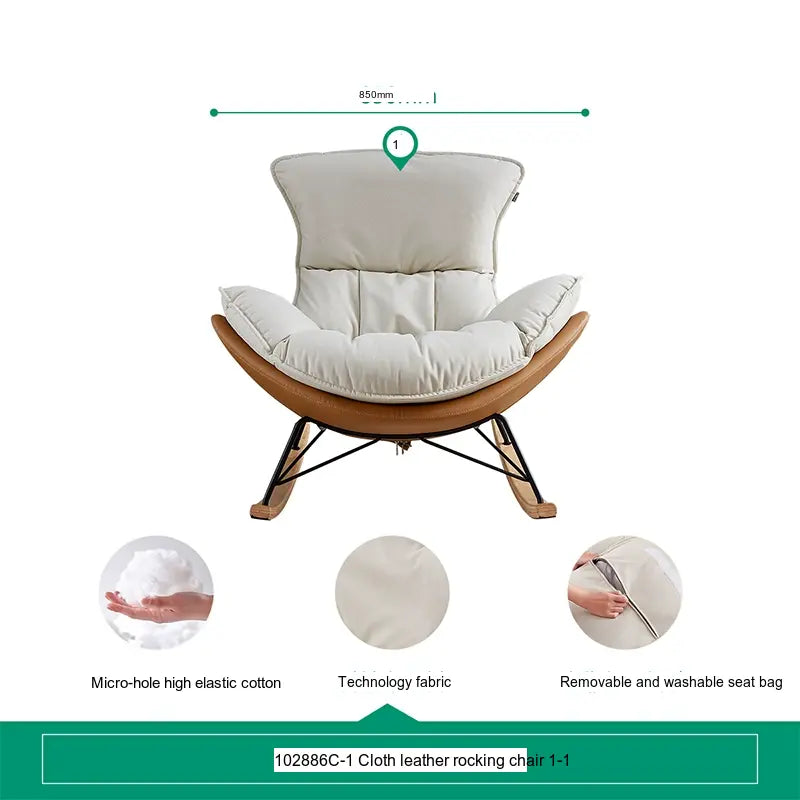 Engineered with comfort in mind, the Ailani rocking chair features a robust frame made from a blend of solid wood and stainless steel, guaranteeing durability and stability. The seat and backrest are generously padded with premium foam and latex particles, creating a sitting experience akin to being enveloped in luxurious softness. The chair's high-elastic cotton has been meticulously proportioned to ensure that every sitting session offers superb support, easing the discomfort often associated with prolonged periods of sitting.