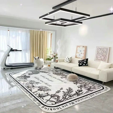 The ZIHAN Mariposa area rug features a beautiful floral pattern that captures the essence of nature. The plant and flower motifs create a serene ambiance, perfect for turning any room into a relaxing oasis. Its minimalist style ensures that it complements a variety of decor styles, from modern and chic to vintage pastoral. The soft color palette allows it to blend beautifully with existing furnishings and wall colors, making it a versatile choice for any room. This elegant design not only enhances the aesthetic appeal of your home but also serves as a conversation starter for your guests, drawing them into the inviting atmosphere you've created.
