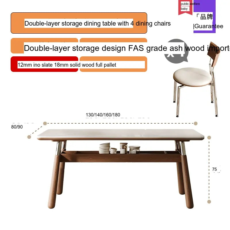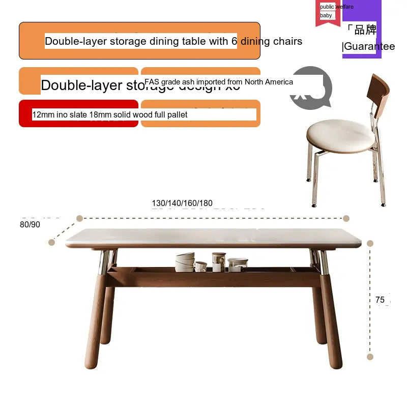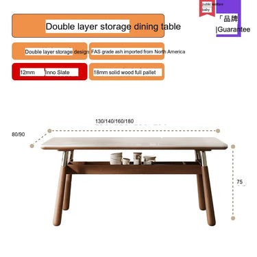 The table features a stunning double-layer rock slab top that enhances its rugged yet elegant appeal. This unique design element not only adds an exquisite touch but also provides additional storage space, making it incredibly practical for everyday use. The rock slab surface is easy to clean and maintain, ensuring that your space remains pristine even after the liveliest dinners.