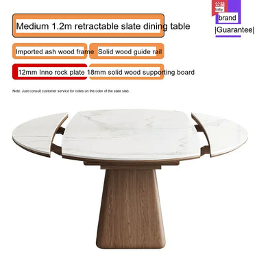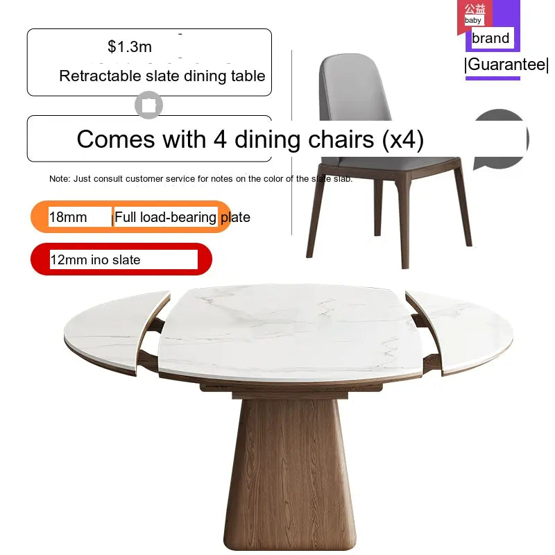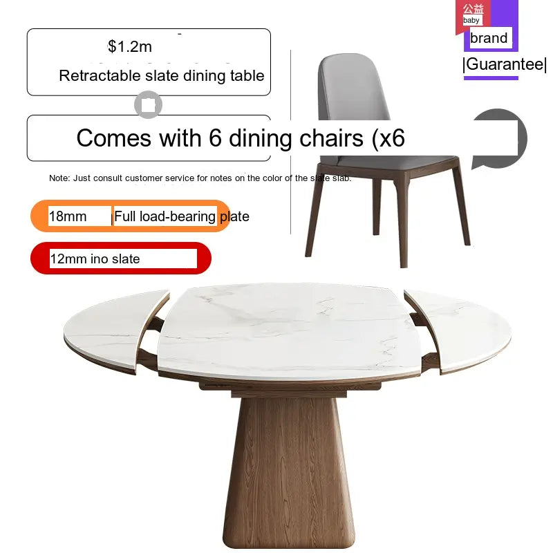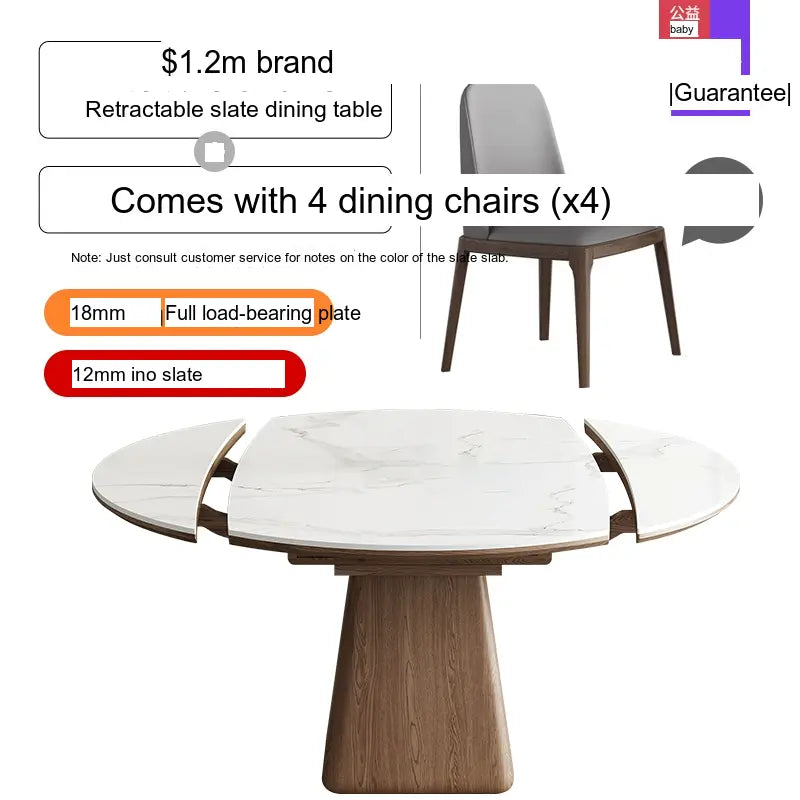 This modern dining table is designed with adaptability in mind. The telescopic feature allows you to effortlessly extend the table from its original size, accommodating unexpected guests with ease. Choose from three size options, including a 1.2m, 1.3m, or 1.5m round table, ensuring you'll find the perfect fit for your dining space. Each option is available with accompanying chairs, ranging from sets that include four to six chairs, allowing you to design your dining area to best suit your needs.