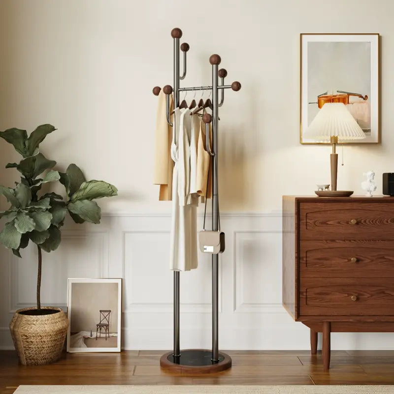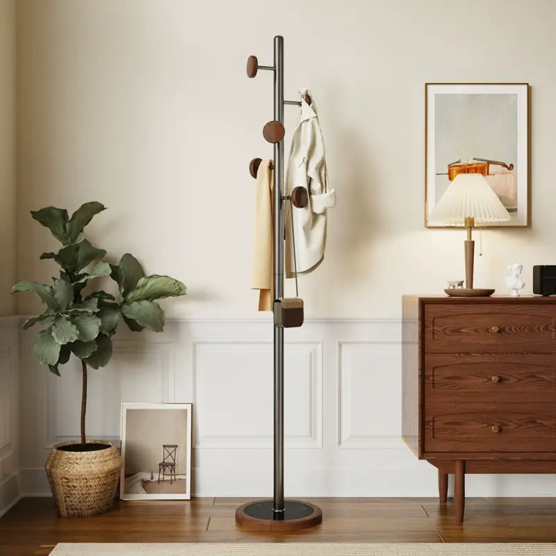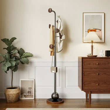 The BOGLE Alessandra Coat Rack embodies an industrial-chic style, combining polished stainless steel with thoughtfully designed elements. The addition of black walnut wood hooks infuses the coat rack with warmth and character. These round hooks are meticulously crafted to protect your garments from damage while ensuring easy accessibility. The wood's natural grain and density enhance durability and impart an organic touch, seamlessly integrating with the sleek steel frame.