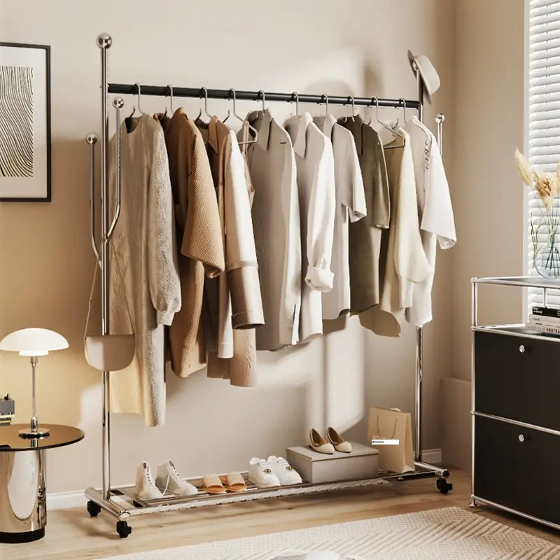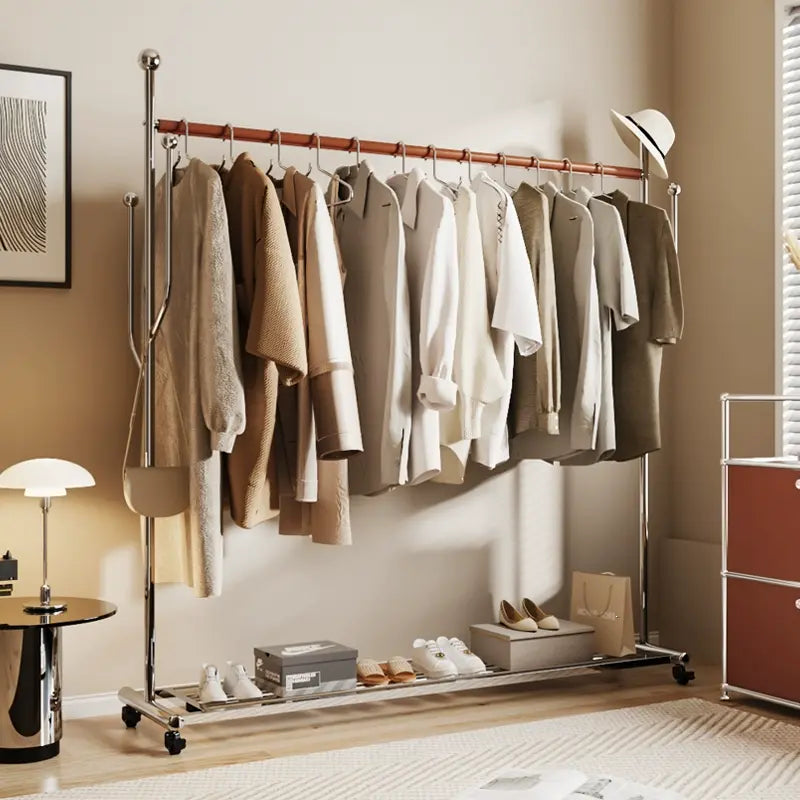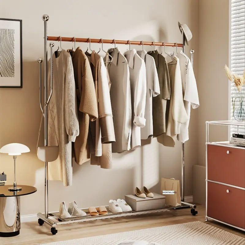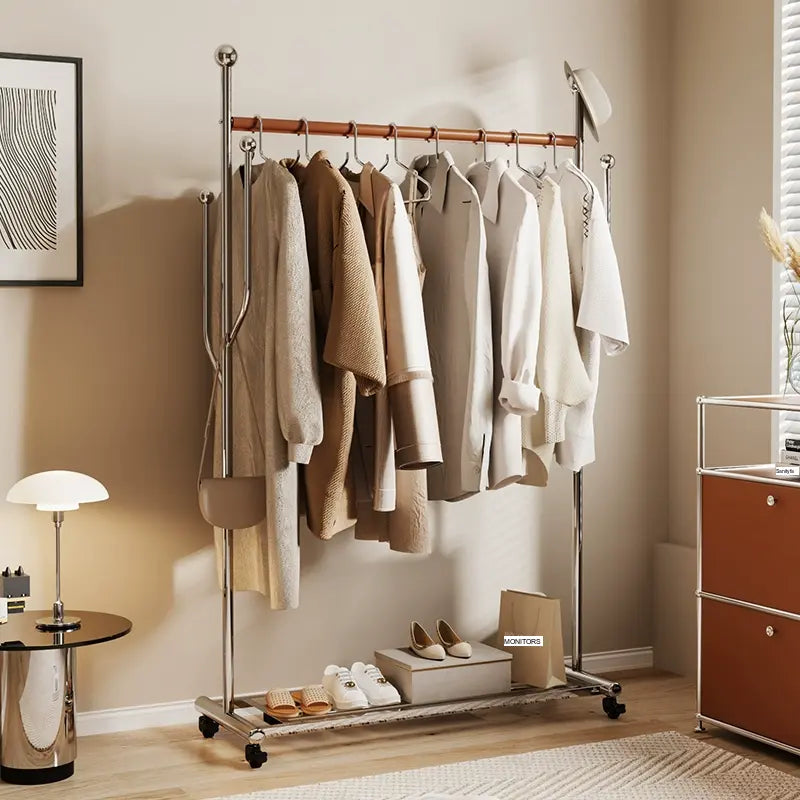 Among its many thoughtful design attributes is a unique universal wheel that makes relocating the coat rack an effortless task. This feature is perfect for anyone who enjoys frequently rearranging their space. Additionally, the rack showcases saddle leather-wrapped crossbars that not only add a touch of sophistication but also provide an anti-slip grip, ensuring all your items stay securely in place regardless of how heavy they might be.