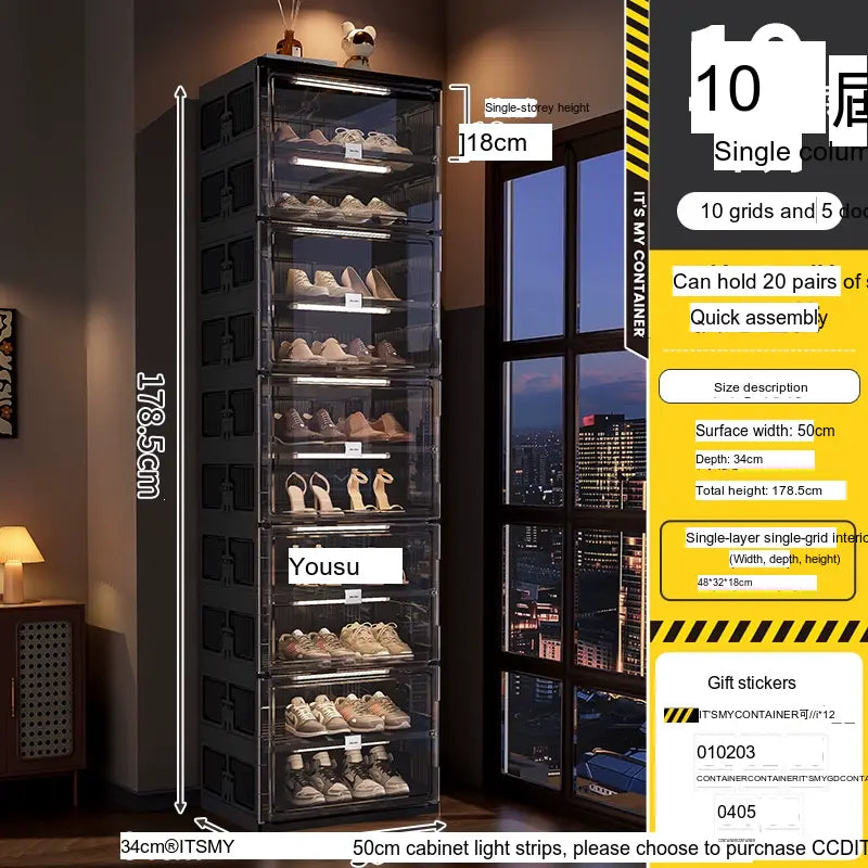 Introducing the JEKOJEKO Orion Innovative Folding Shoe Rack Cabinet, a perfect blend of functionality and aesthetic appeal designed specifically for the discerning shoe lover. This modern storage solution not only keeps your footwear neatly organized but also adds a touch of contemporary style to any interior space.