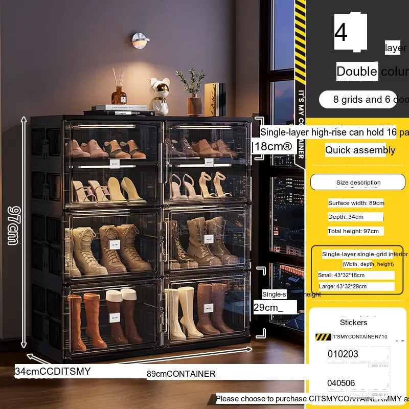 - 2 Columns, 8 Floors (Holds up to 16 pairs of shoes)