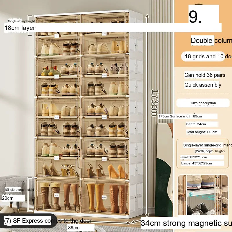 - 2 Columns, 9 Floors (Holds up to 18 pairs of shoes)