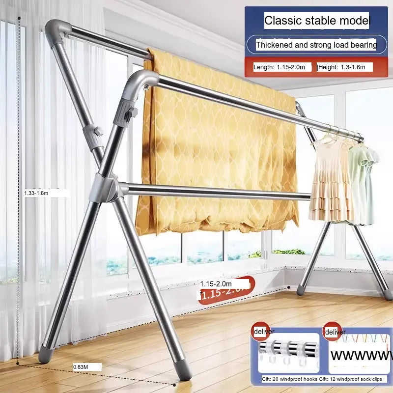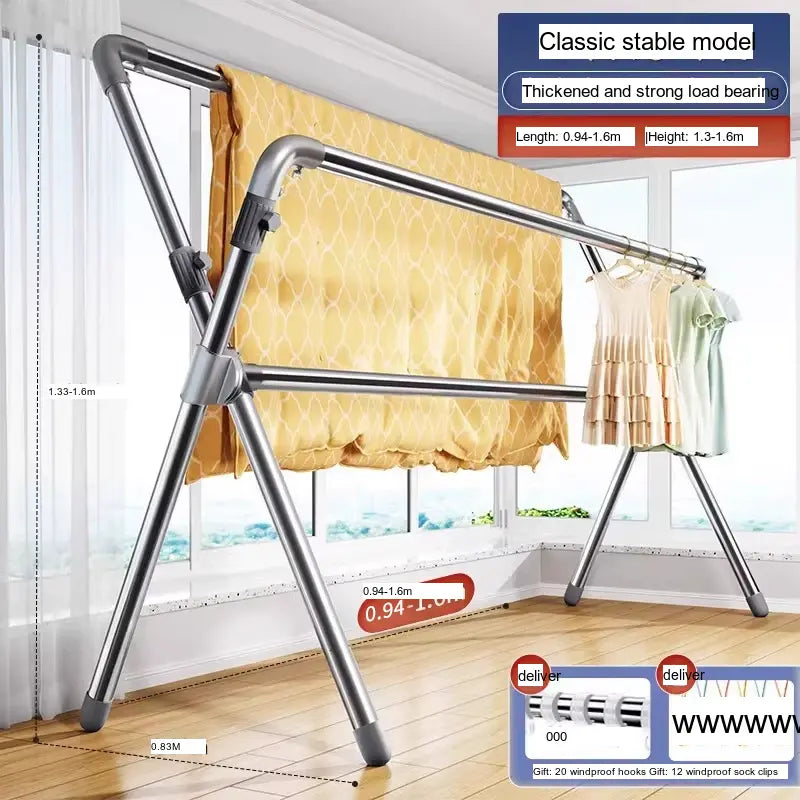 - Robust Material: Crafted from premium stainless steel, this drying rack promises longevity and sturdiness. The thickened steel pipes enhance its load-bearing capacity, making it suitable for heavy items like quilts and bed linens.