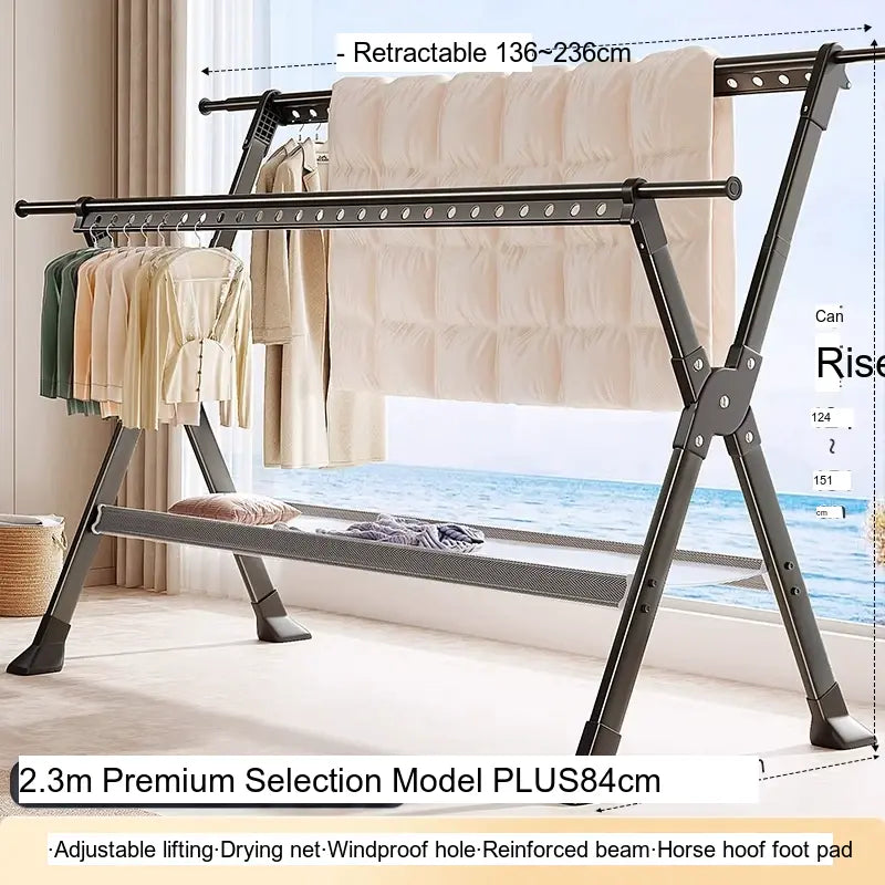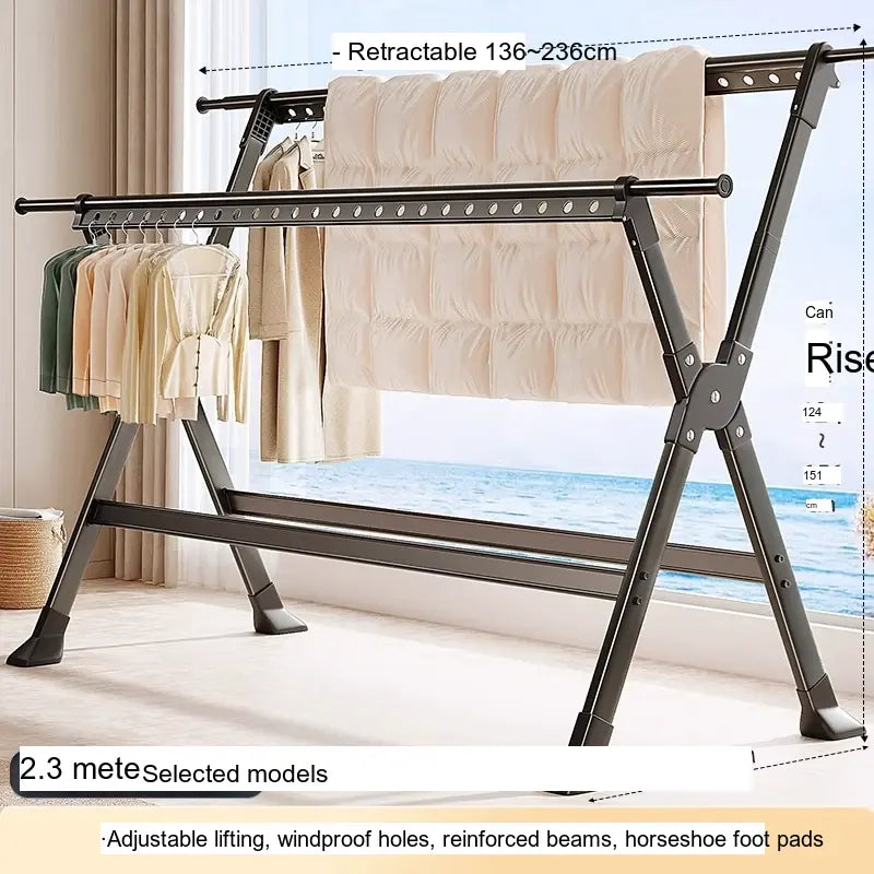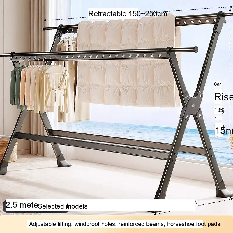 With a length of 2.5 meters, the adjustable drying rack allows you to extend or retract it to suit your drying needs. Whether you have long garments like dresses or heavy quilts, this rack can handle it all! It features a unique telescopic design that can be adjusted from 1.5 meters to 2.5 meters, providing you with flexibility in use. Plus, the ability to raise it means you can easily fit it in smaller spaces or adjust it according to the height of your garment, making it suitable for anyone—including those who need to hang up their sweaters without risk of deformation.