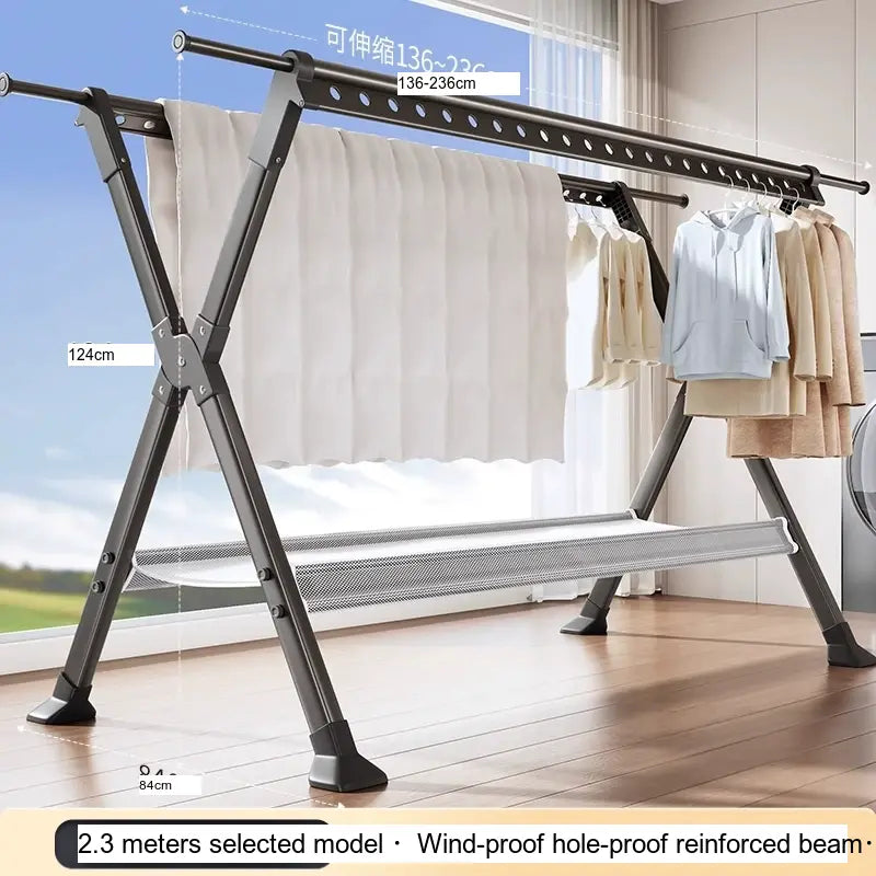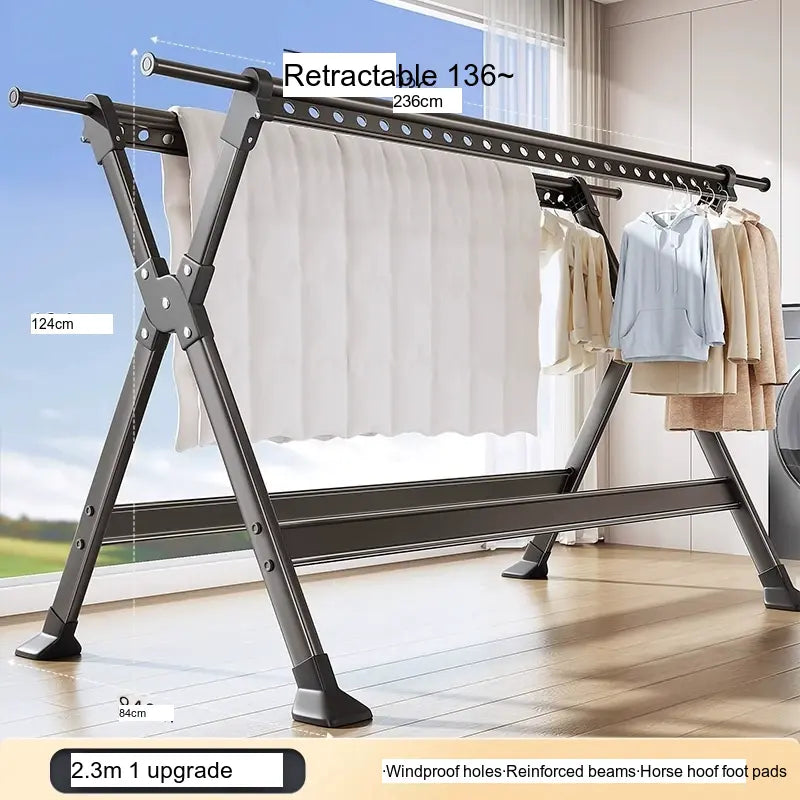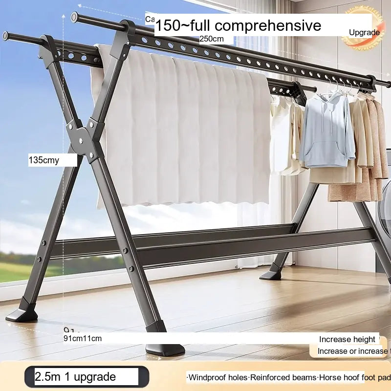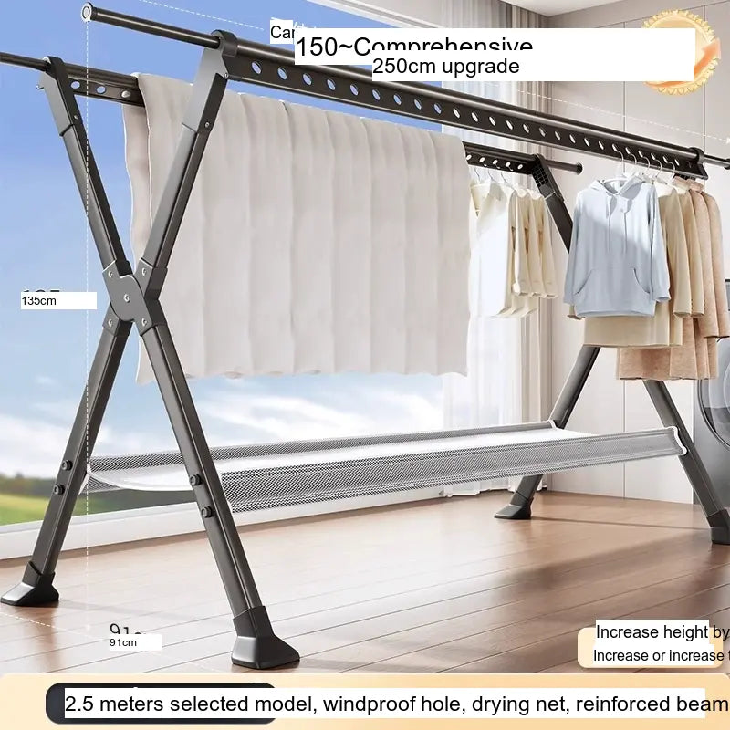 Introducing the JIABANGSHOU Elysia Versatile Folding Clothes Rack, your ultimate solution for efficient clothes drying and organization. Crafted by Jiaboss, this innovative product combines functionality and durability to meet all your drying needs, both indoors and outdoors. With a length of 2.5 meters, it provides ample space for all your laundry, from bulky sweaters to delicate garments.