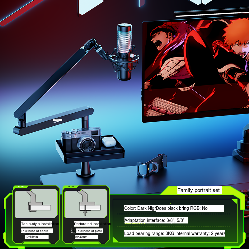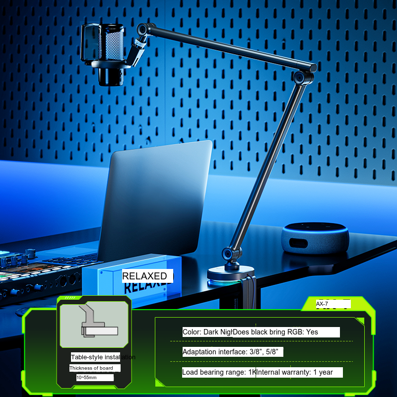 Say goodbye to cumbersome setups. The RATTAN CRAFTSMAN Aniston boasts a dual installation design that accommodates various desktop configurations. Its clamp-on and perforated mounting options allow installation on table thicknesses between 10mm and 55mm. This flexibility means you can use the Aniston on your home desk, on stage, or in a professional studio with ease. It is compatible with a variety of microphone models, supported by standard 3/8" and 5/8" interfaces, making it universally adaptable for all your recording needs.