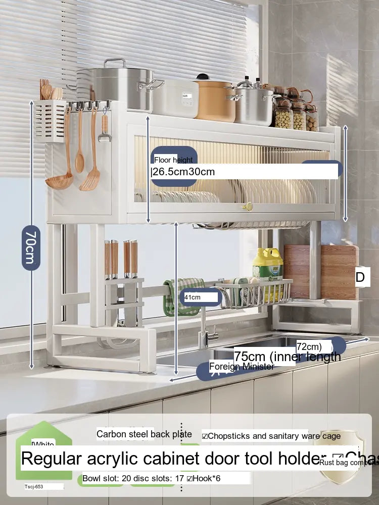 - Durable Acrylic Cabinet Doors: The updated acrylic cabinet doors resist aging and deformation, keeping your kitchen looking fresh and organized while safeguarding your utensils from dust.