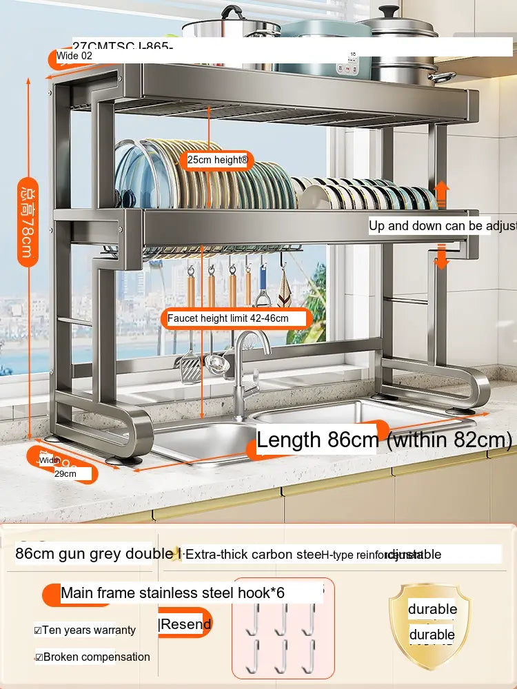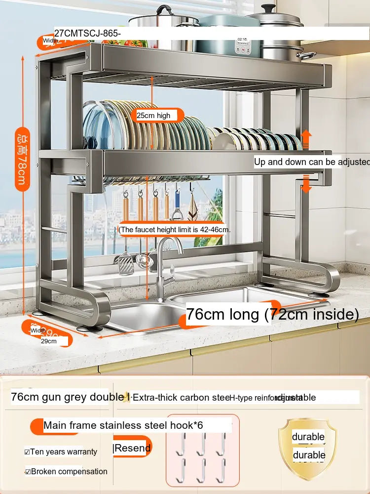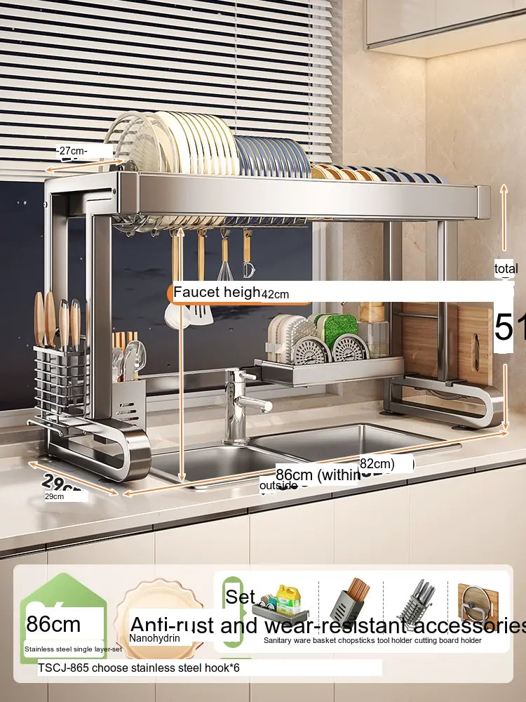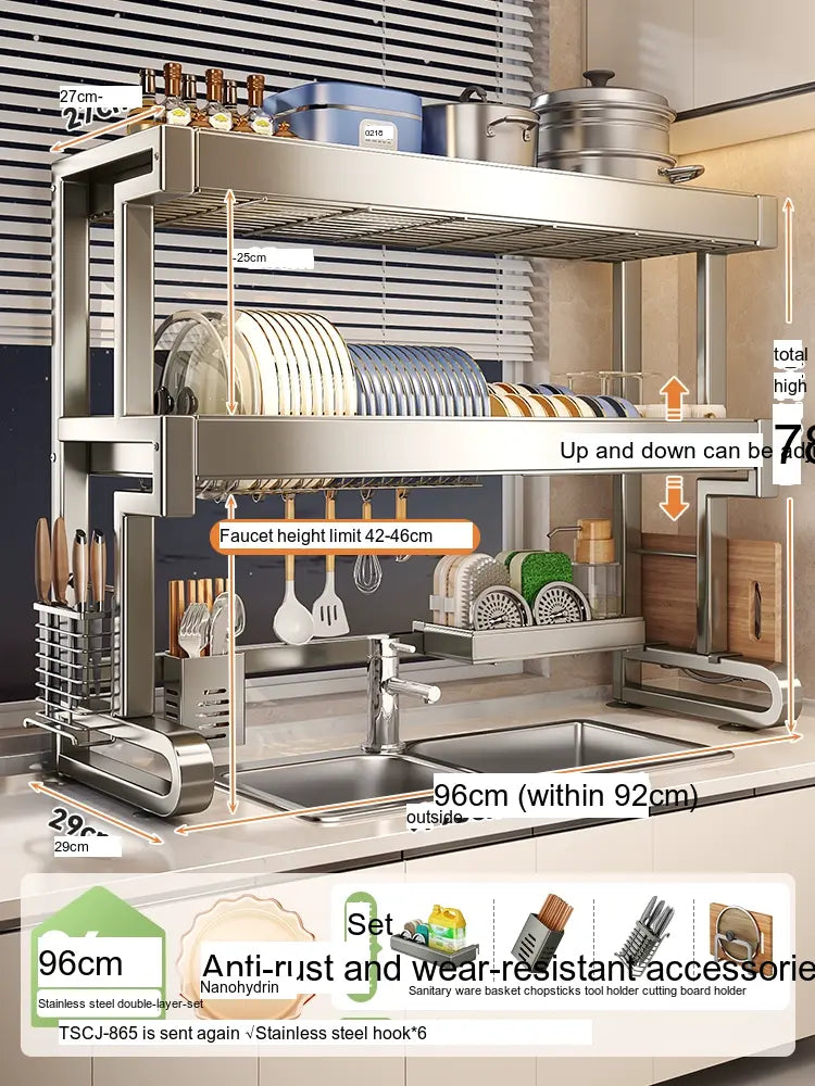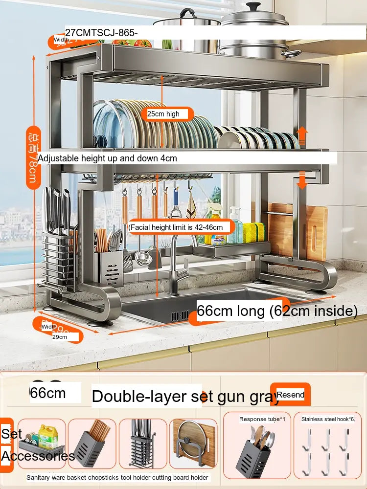 The SHUAISHI Elowen Versatile Kitchen Sink Rack & Drain Shelf is the ultimate solution for enhancing your kitchen organization and efficiency. Crafted by Shuai Shi, this multifunctional sink rack is not just an ordinary kitchen accessory but a complete reimagination of kitchen storage functionality, designed to meet the demands of modern cooking and cleaning tasks.