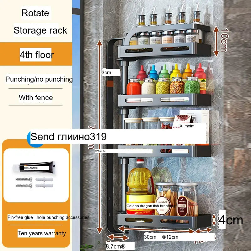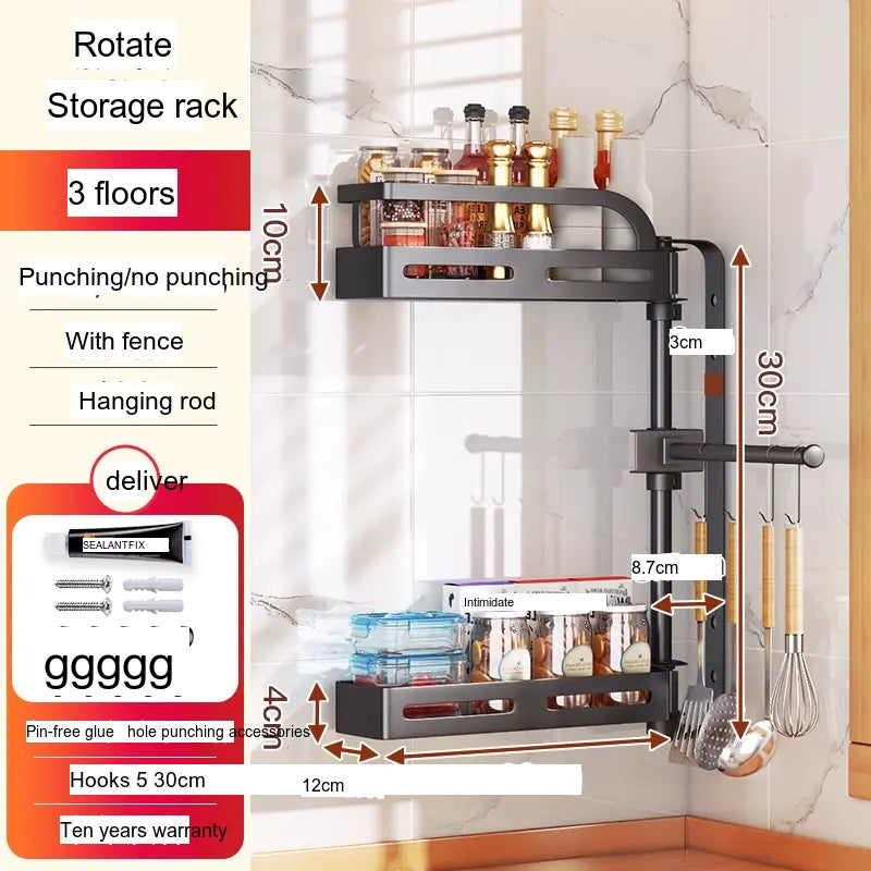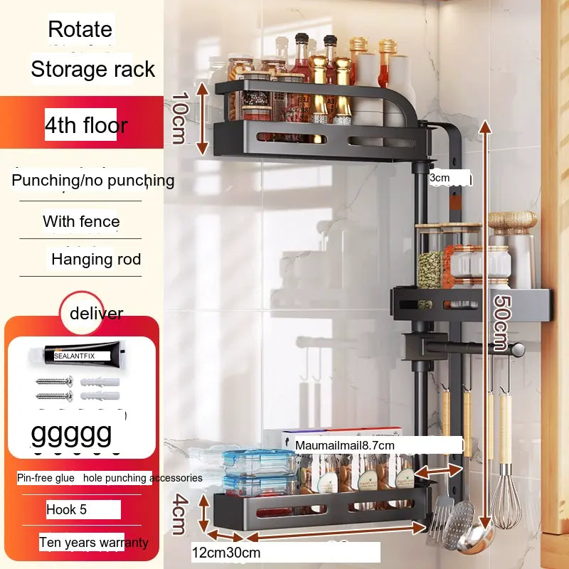 - Customizable Storage: Available in multiple configurations, including two-layer, three-layer, and four-layer designs, the rack's varying setups allow you to choose the perfect fit for your storage needs. Each layer can accommodate a wide array of items like seasoning bottles, knives, and kitchen tools.