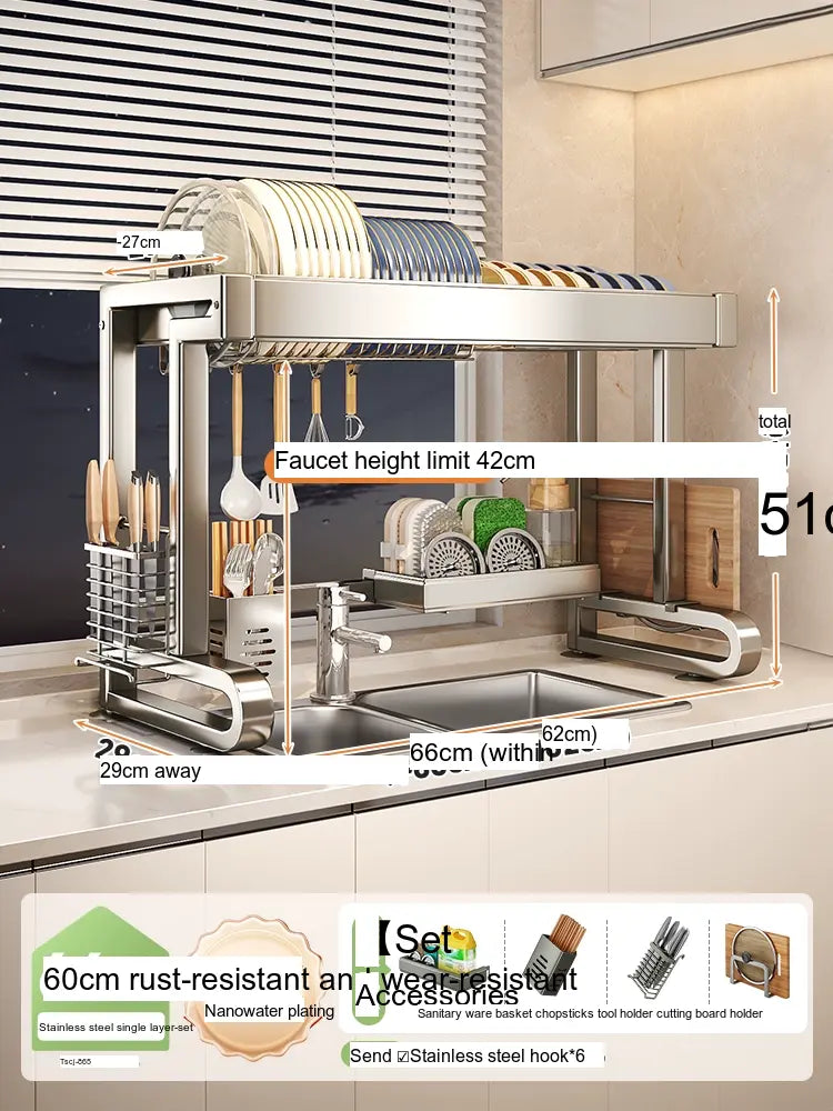 - Versatile Storage: This rack is designed to accommodate a variety of items including bowls, plates, chopsticks, and knives, making it a multifunctional tool in your culinary space.
