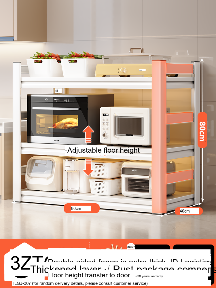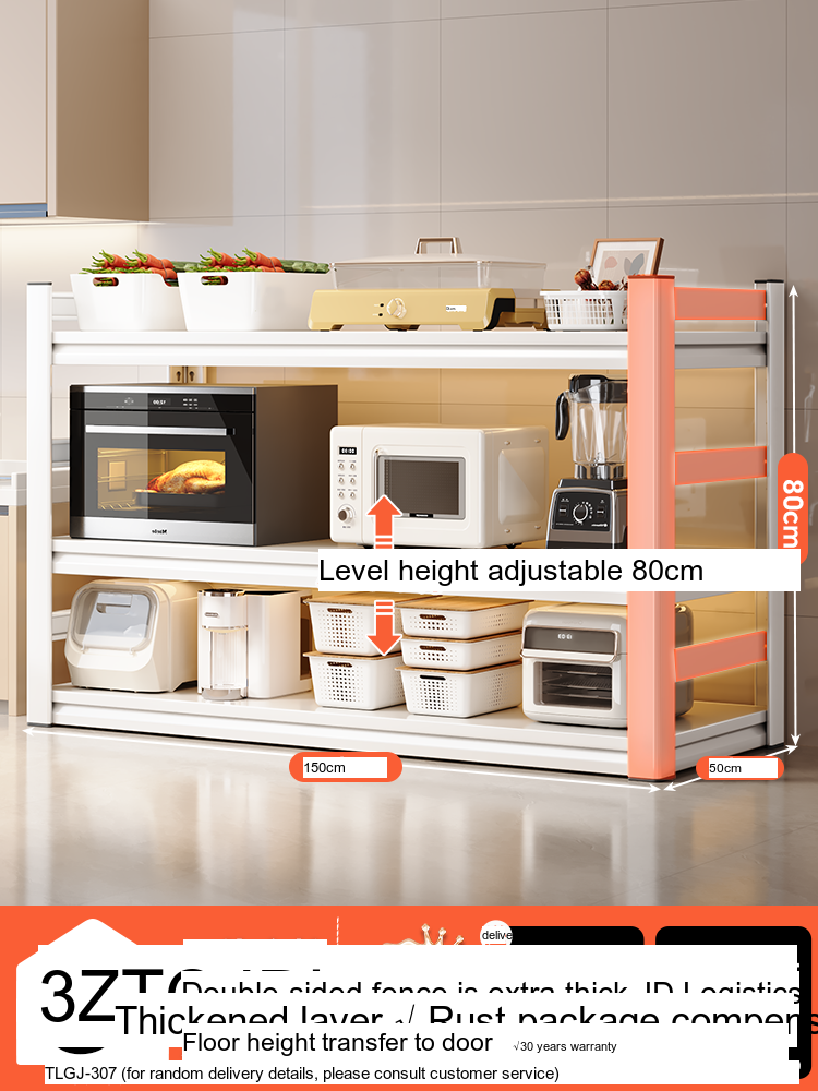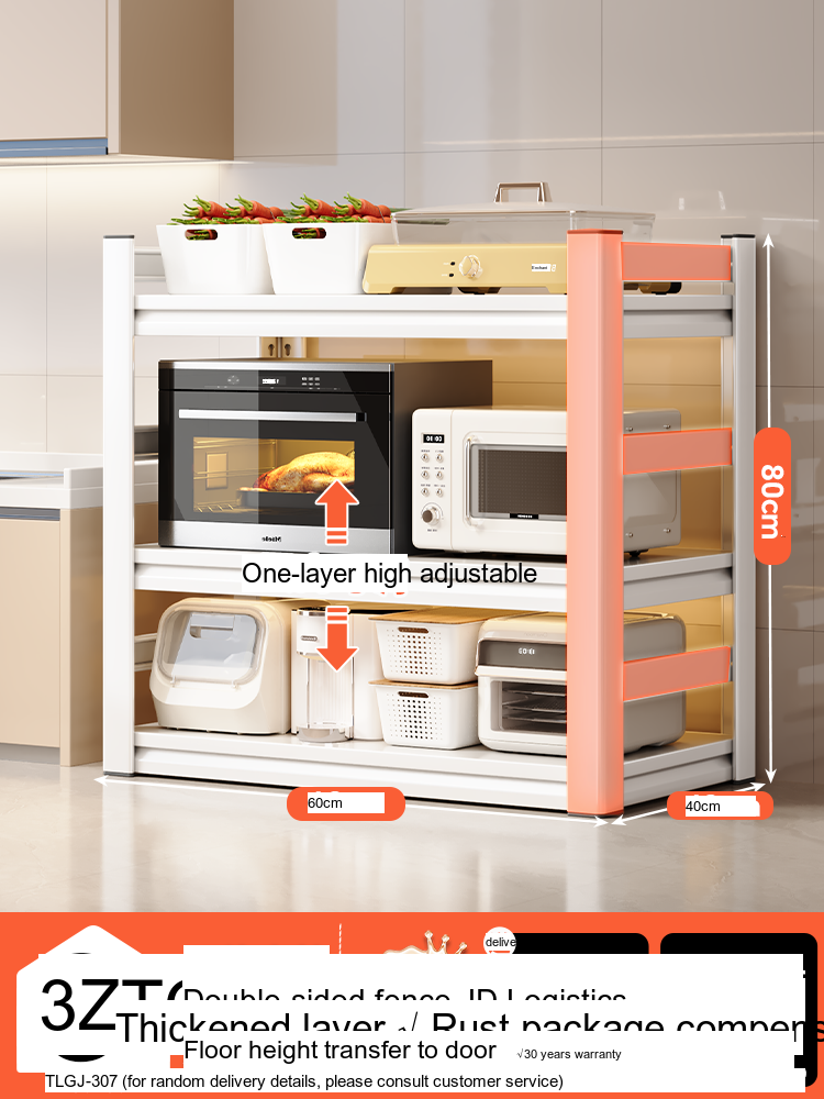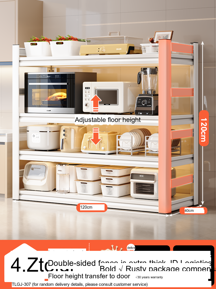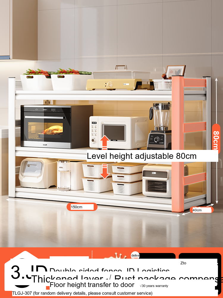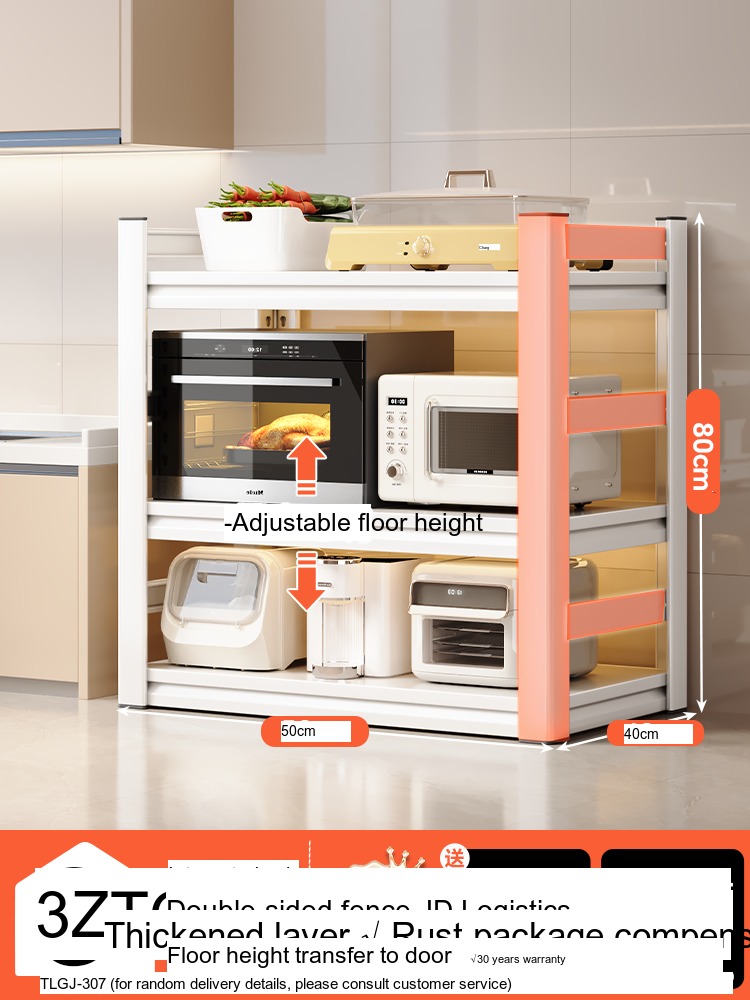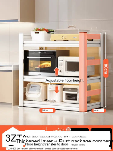 Each model features a double-layer integrated reinforcement column and a double-sided fence design that enhances stability and safety. These features ensure that your kitchen appliances, including microwaves, toasters, and other heavy items, are securely supported. The shelf is designed to hold significant weight—up to 300 catties—while maintaining its integrity.