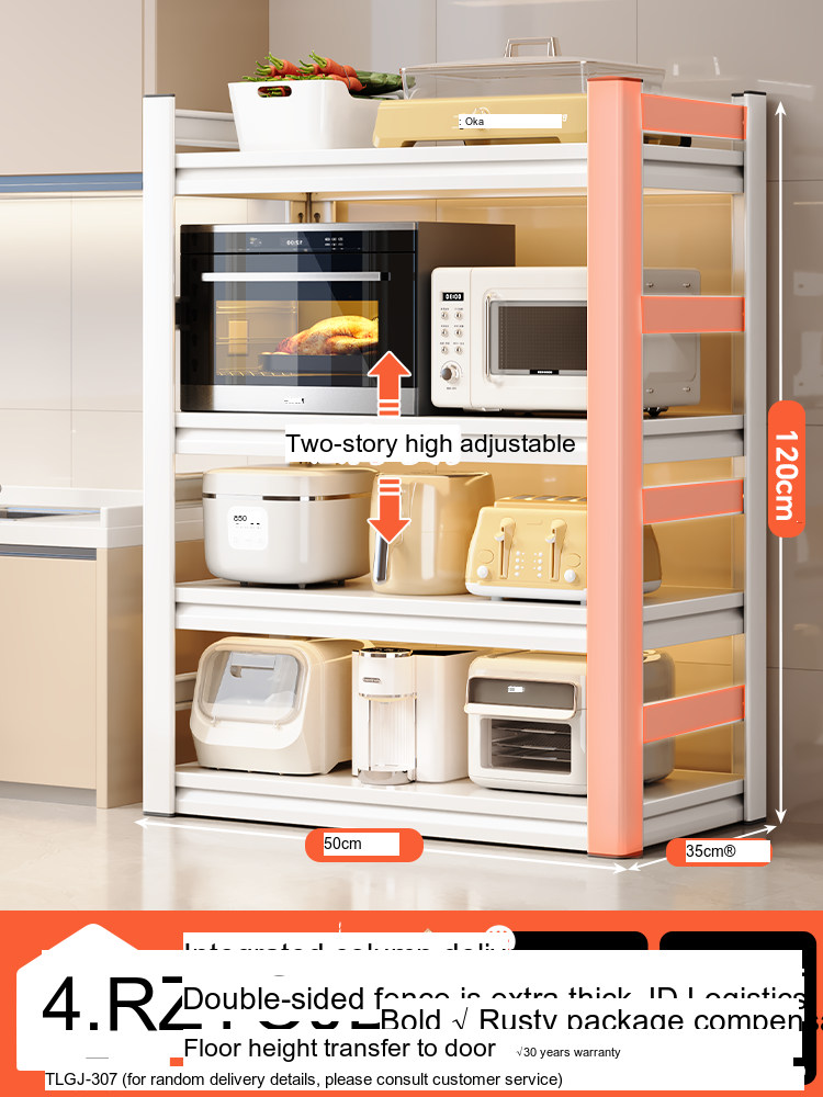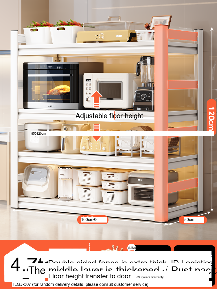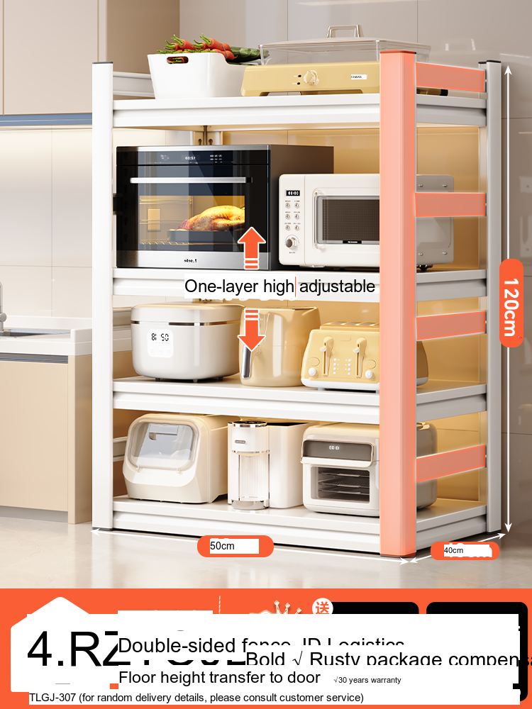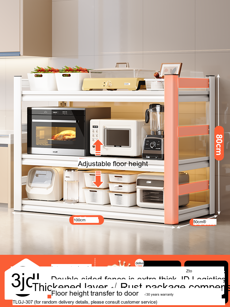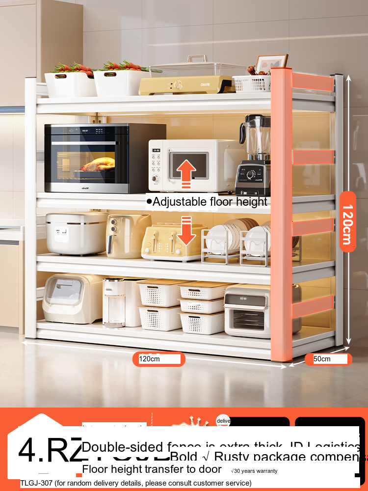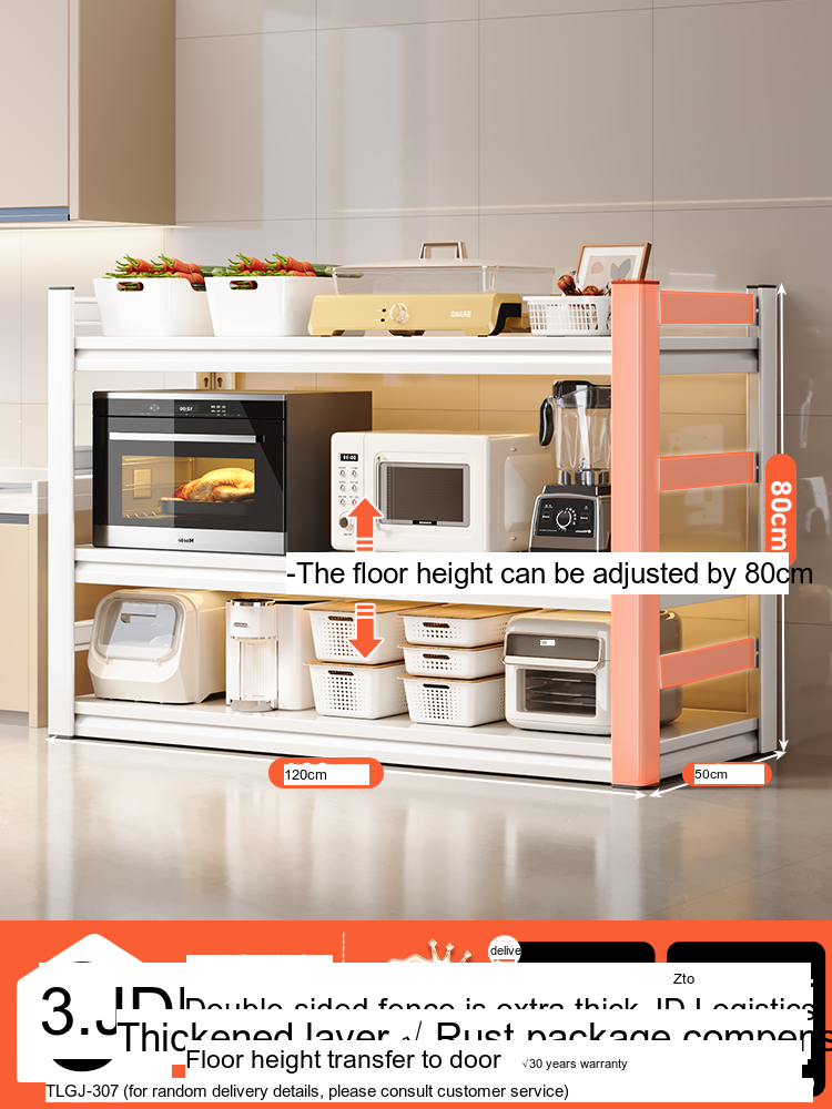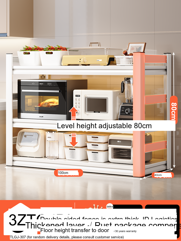 Each model features a double-layer integrated reinforcement column and a double-sided fence design that enhances stability and safety. These features ensure that your kitchen appliances, including microwaves, toasters, and other heavy items, are securely supported. The shelf is designed to hold significant weight—up to 300 catties—while maintaining its integrity.