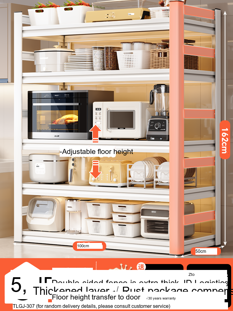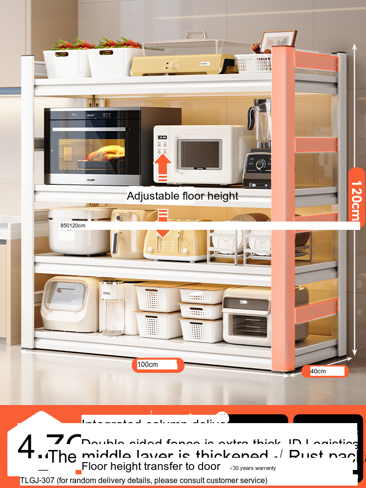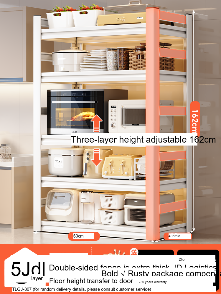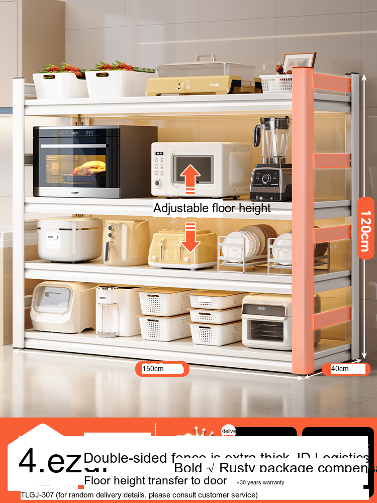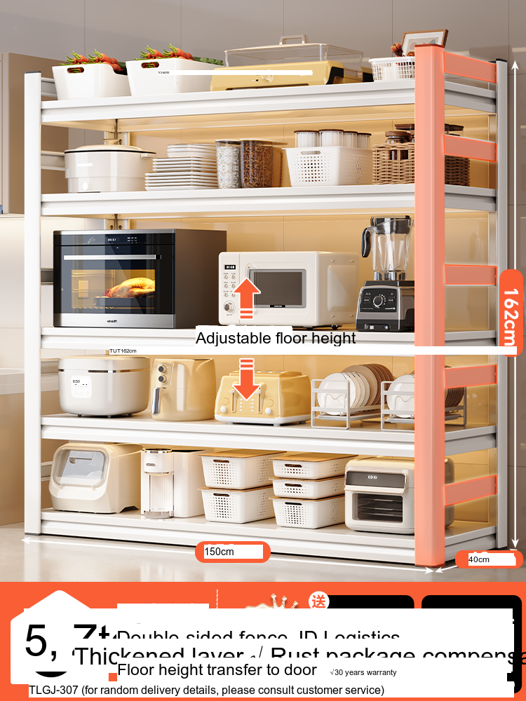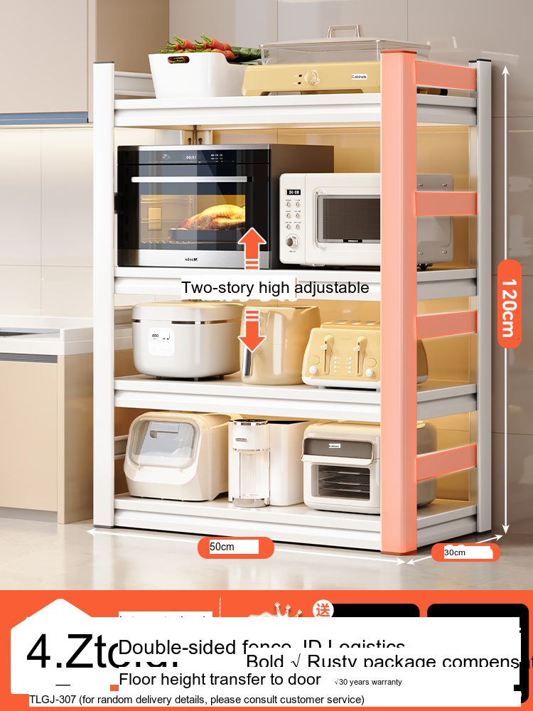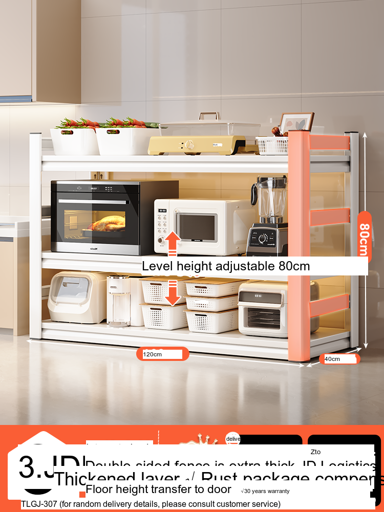 Each model features a double-layer integrated reinforcement column and a double-sided fence design that enhances stability and safety. These features ensure that your kitchen appliances, including microwaves, toasters, and other heavy items, are securely supported. The shelf is designed to hold significant weight—up to 300 catties—while maintaining its integrity.