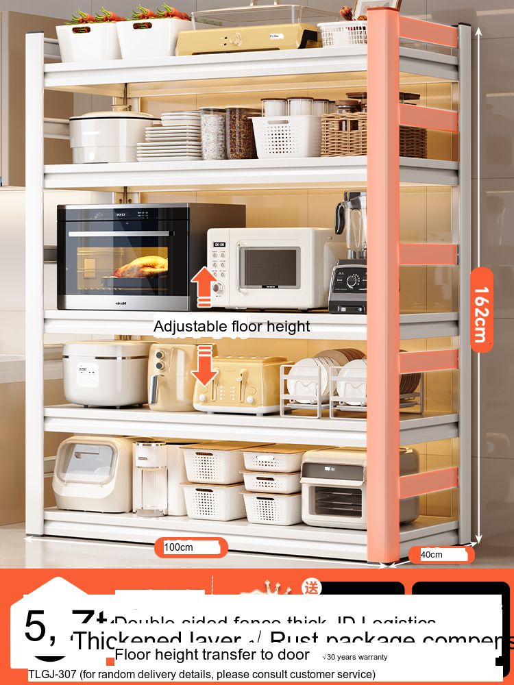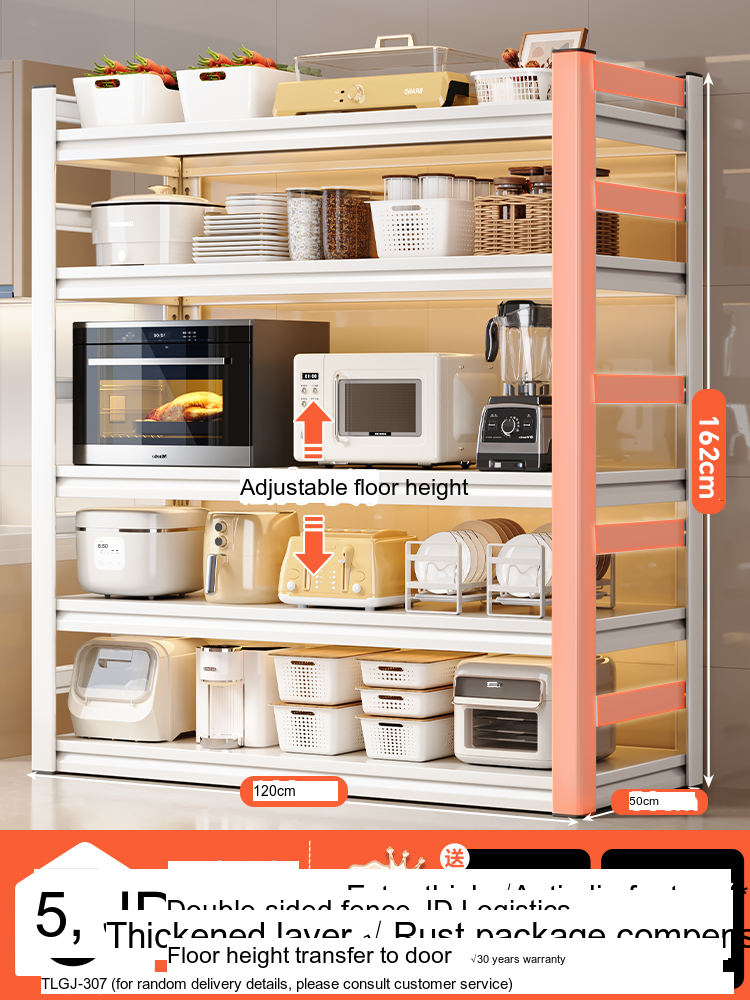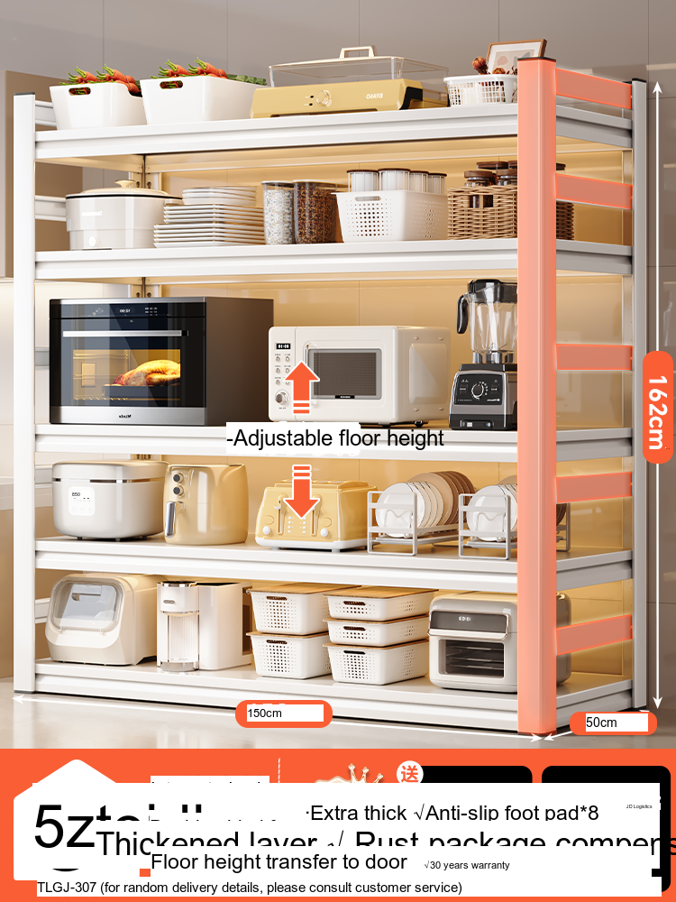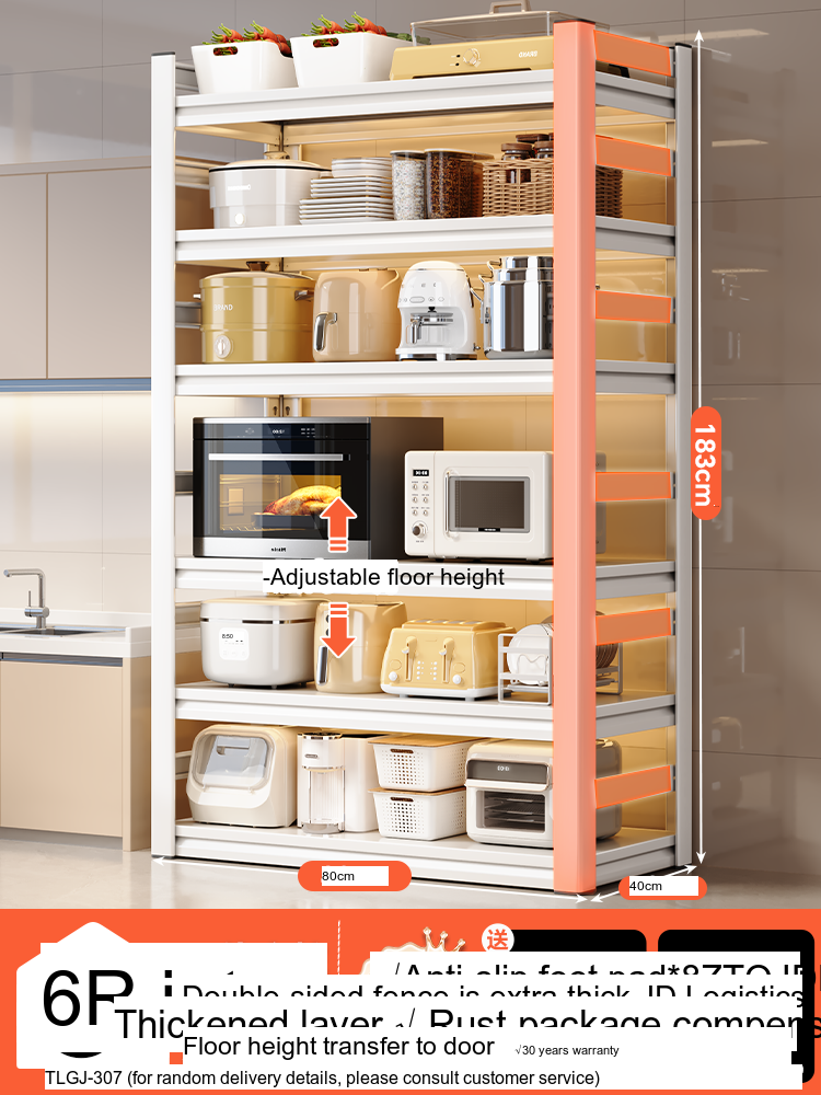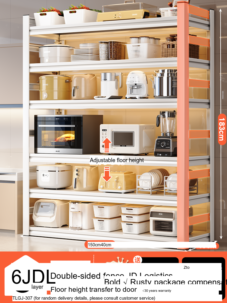 This storage shelf offers multiple configurations to meet your storage needs. With options for three layers, four layers, five layers, and even six layers, the SHUAISHI Valverde is designed to adapt to your unique requirements. Each layer can accommodate different appliance sizes and kitchenware, making it incredibly versatile. Specifically: