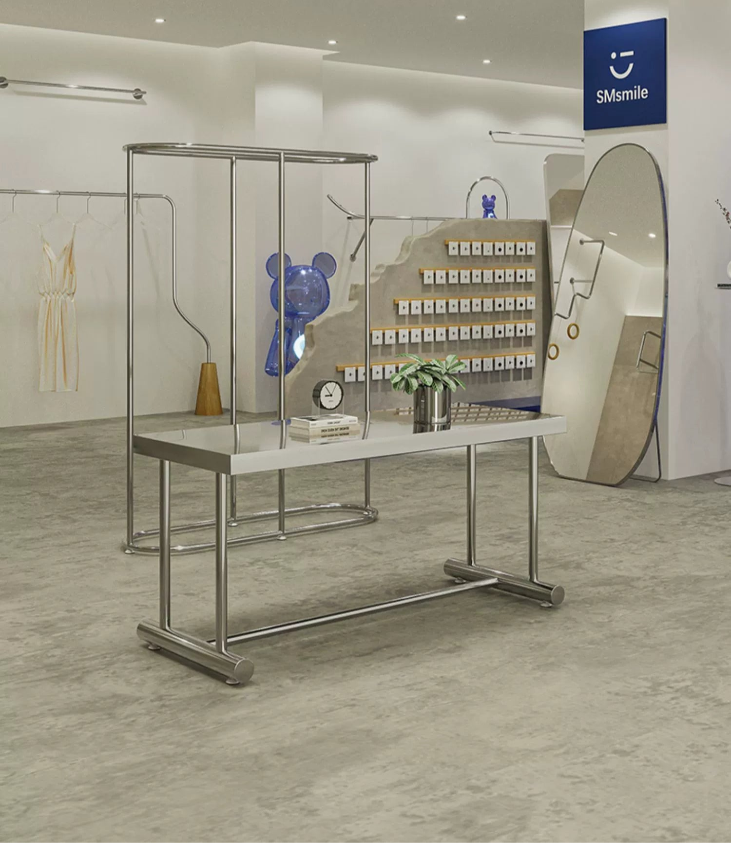 Welcome to the world of refined elegance and practical design with the SM Leo Stainless Steel Accessory Display Stand by Mysterious Smile. This stunning accessory display stand is meticulously crafted to provide both aesthetic appeal and functionality, catering to modern retail needs. Designed with a modern and simple style, this stand is a staple for clothing stores, boutiques, and even home environments where you wish to showcase your precious items beautifully.
