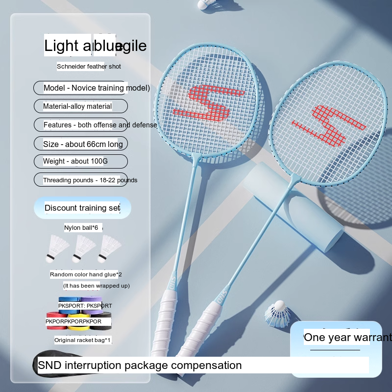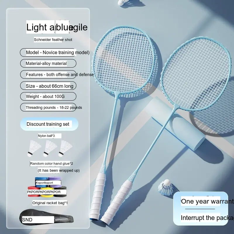 Moreover, the featherlight set is accompanied by an assortment of accessories including shuttlecocks and hand glue, ensuring you have everything you need to hit the court right away. As a special offer, enjoy half-price for new products and consult our customer service for inquiries.