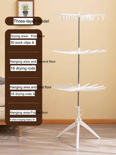 This innovative drying rack is perfect for use in various scenarios, including balconies, laundry rooms, and bedrooms. Designed to cater to the needs of modern families, the rack is available in two configurations: a three-layer and a double-layer version, making it adaptable to your drying needs. The space-saving design allows you to dry more clothes without occupying much floor space.