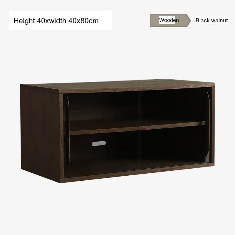 Additionally, the shelf is available in options such as the white oak color push door cabinet and black walnut transparent cabinet. Each finish provides a unique look to complement any interior decor, making it a versatile addition to your home.