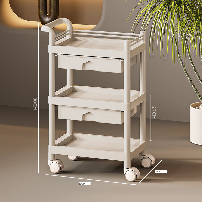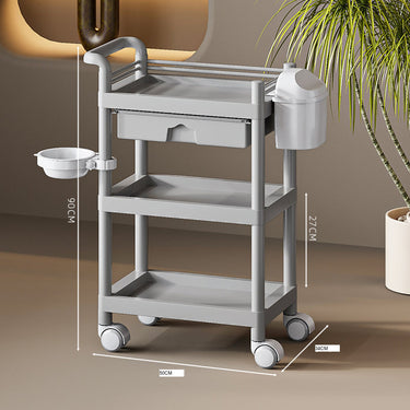 This versatile beauty cart features multiple color options—including gray, white, and beige—allowing it to blend seamlessly into any decor while providing ample storage. With a thoughtful layout that includes three layers for organized storage, it accommodates a variety of items from nail polishes and tools to cleaning supplies. Each layer is thoughtfully designed with depth and strength, allowing for stable storage without the risk of tipping.