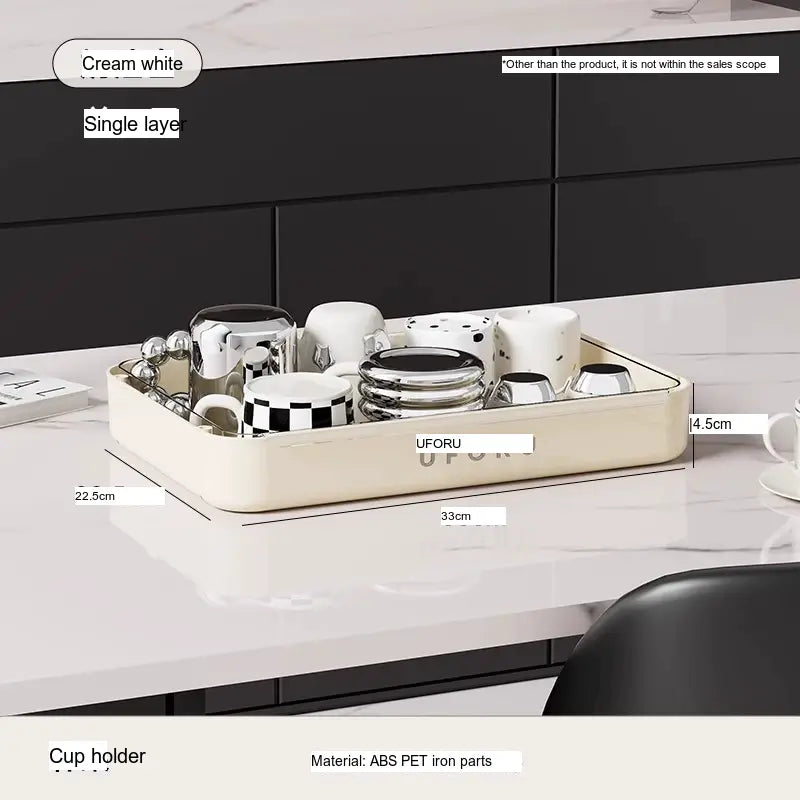 This stylish drying rack offers multifaceted utility. Beyond just drying tea cups, it can serve as an organizer for mugs, plates, or smaller kitchenware. The advanced design prioritizes stability and security, ensuring that your items remain safely in position. With a high surrounding rail, you can rest easy knowing that your cups or dishes won't topple over, even when stacked high.