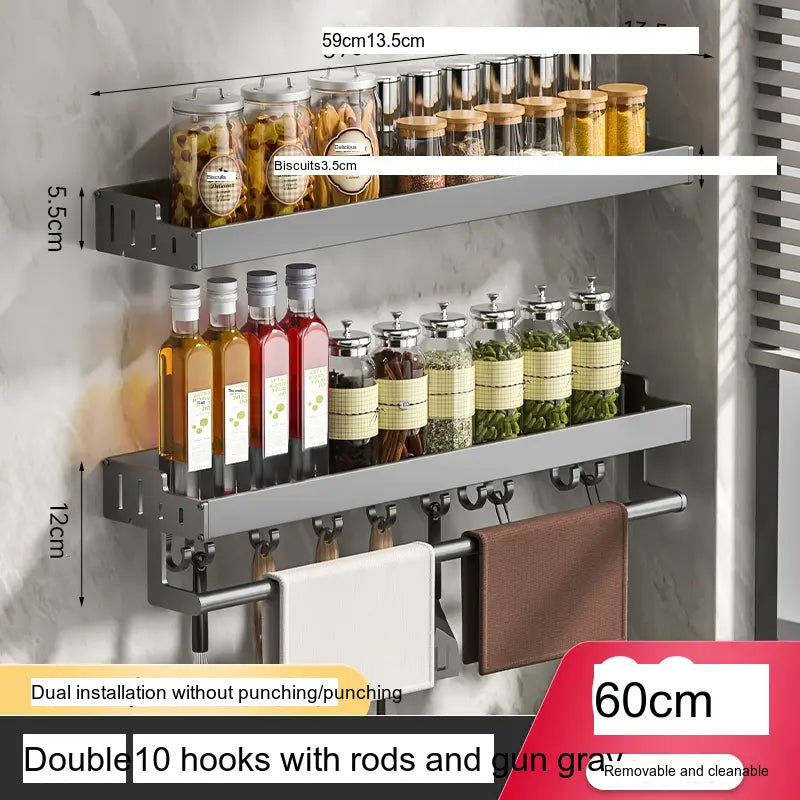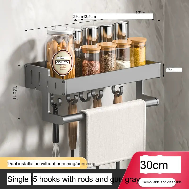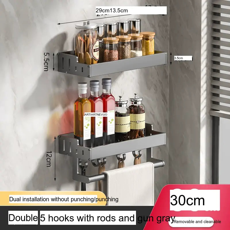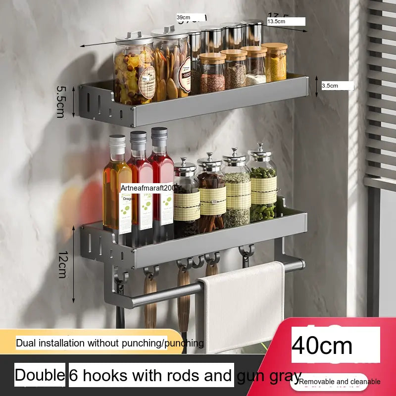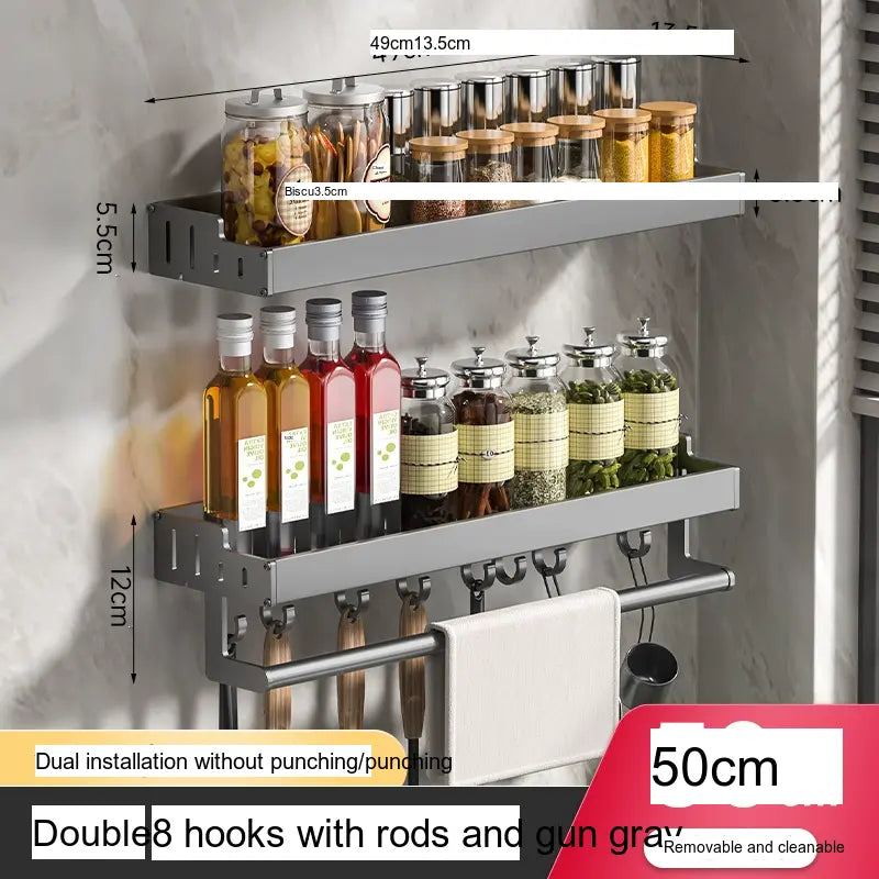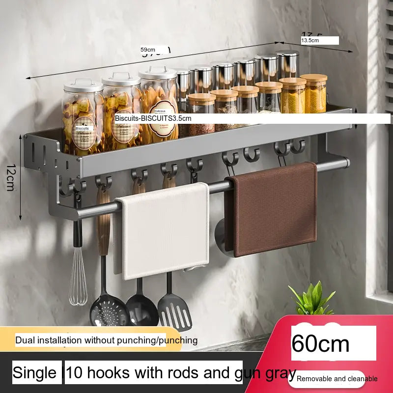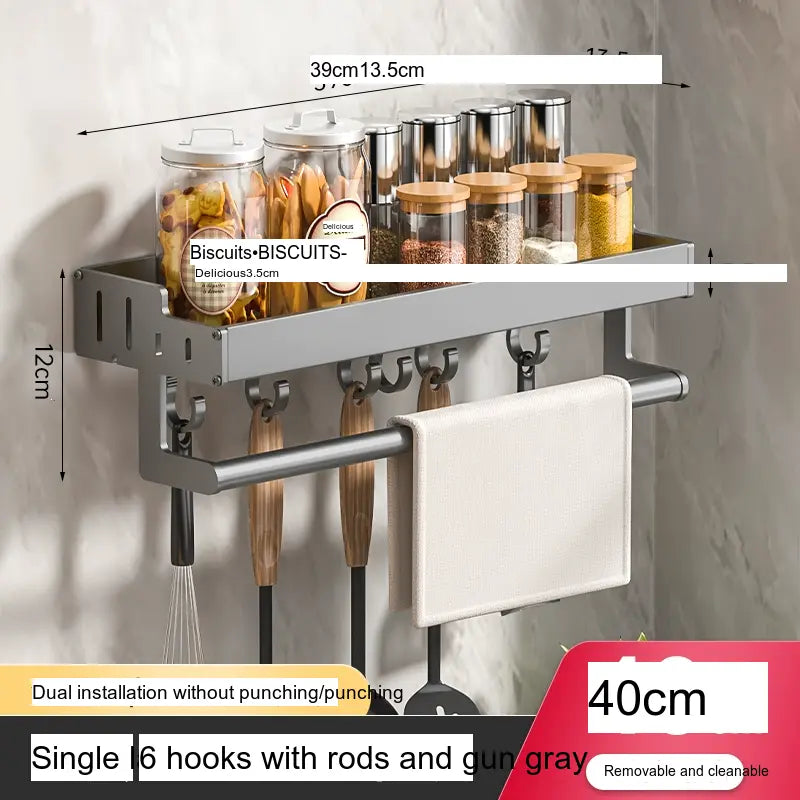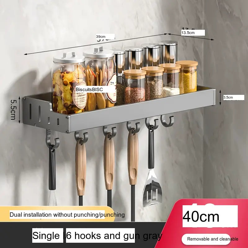 This storage rack is perfect for a multitude of applications. Use it in the kitchen for organizing spices, sauces, and cooking tools, or as a stylish display for decorative items. It can also be utilized in bathrooms for toiletries, or as a handy shelf in the garage for tools and other essentials. Choose from a variety of sizes—30cm, 40cm, 50cm, and 60cm—to find the perfect fit for your space. Select models even include additional hooks for hanging utensils, towels, and other items, catering to your specific needs.