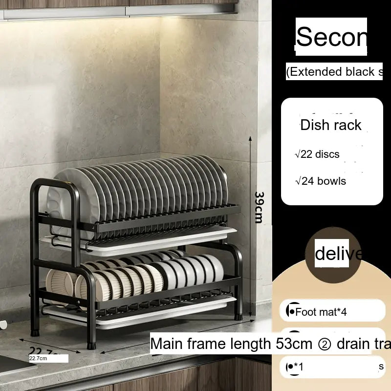 The modern structure of our ZENCAI Elowen dish rack is sure to complement your kitchen aesthetics. With a double or triple-layer option in classic black, it enhances both function and form on your countertop.