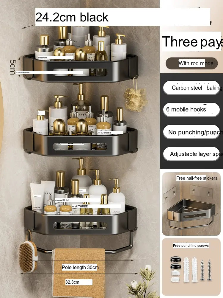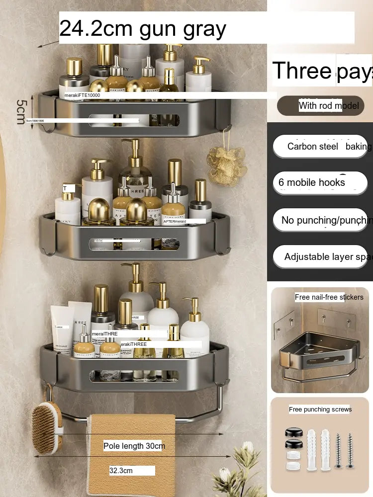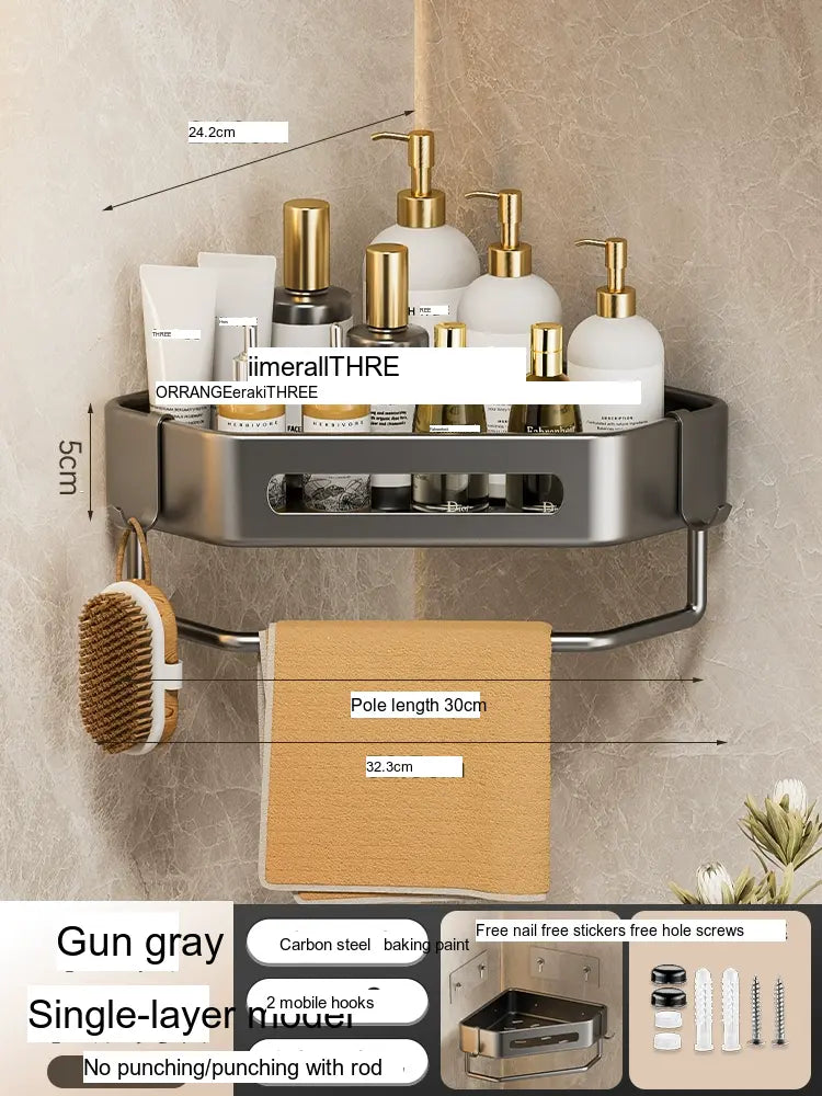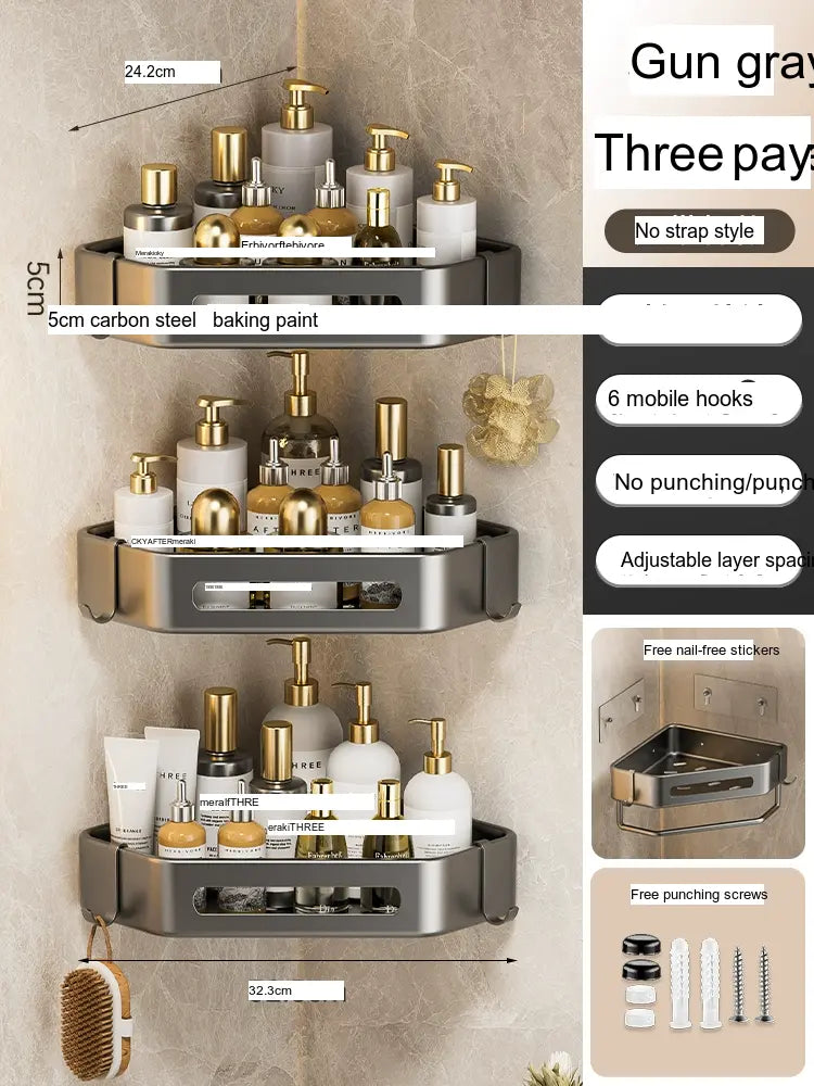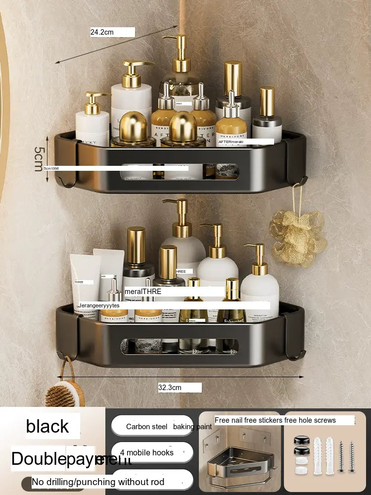 This versatile rack boasts two layers of storage capacity that can be freely adjusted to accommodate different item heights. Whether you need space for large bottles, small jars, or books, the adjustable layer spacing allows for customized organization, making it easy to access your items. The triangular design is not just for aesthetics; it maximizes available wall space, ensuring that you make the most of every corner while keeping your belongings neatly arranged.