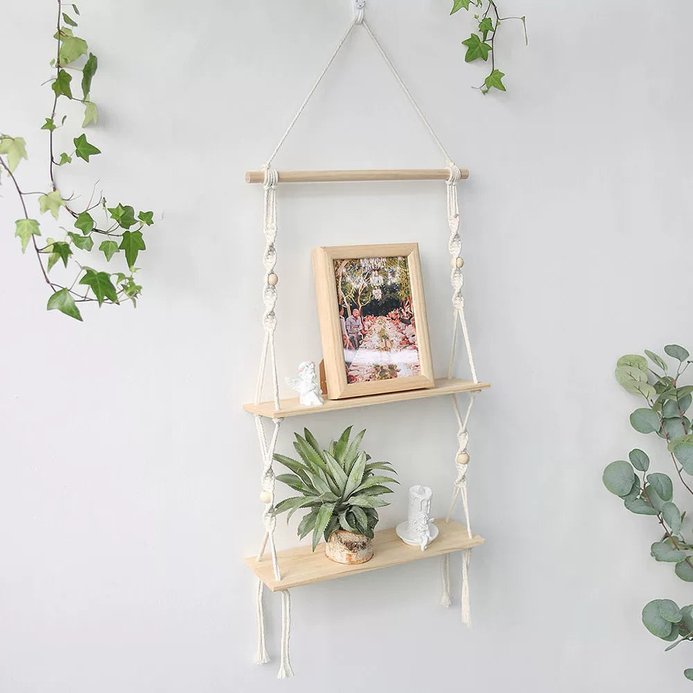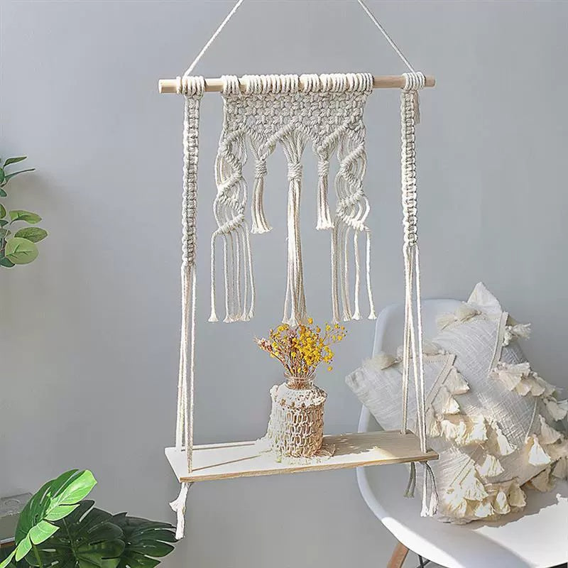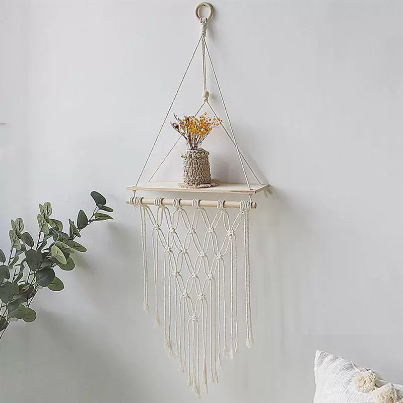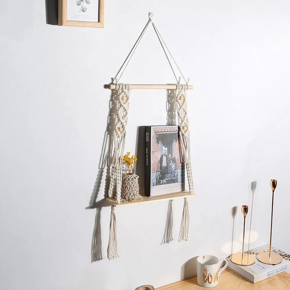 ZHANG MEIMEI Nordic Boho Macramé Hanging Shelf