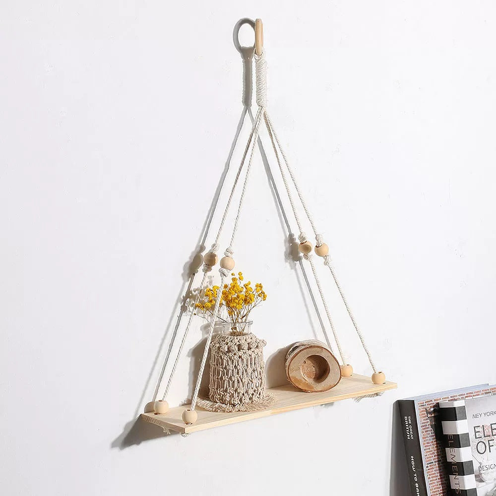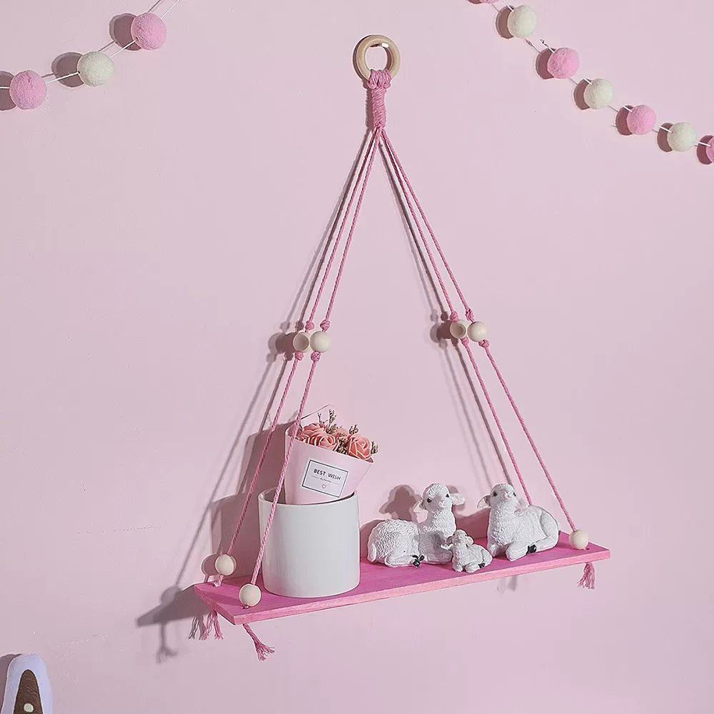 This hanging shelf is a perfect fit for modern, Nordic, rustic, or boho-style interiors. Hang it in your bedroom, living room, entryway, or even in the bathroom to display small items in style. It also works well as a decorative accent for special occasions like weddings, baby showers, or holiday celebrations.