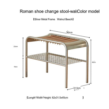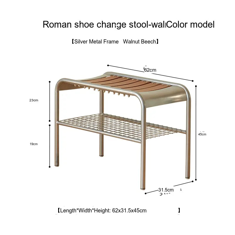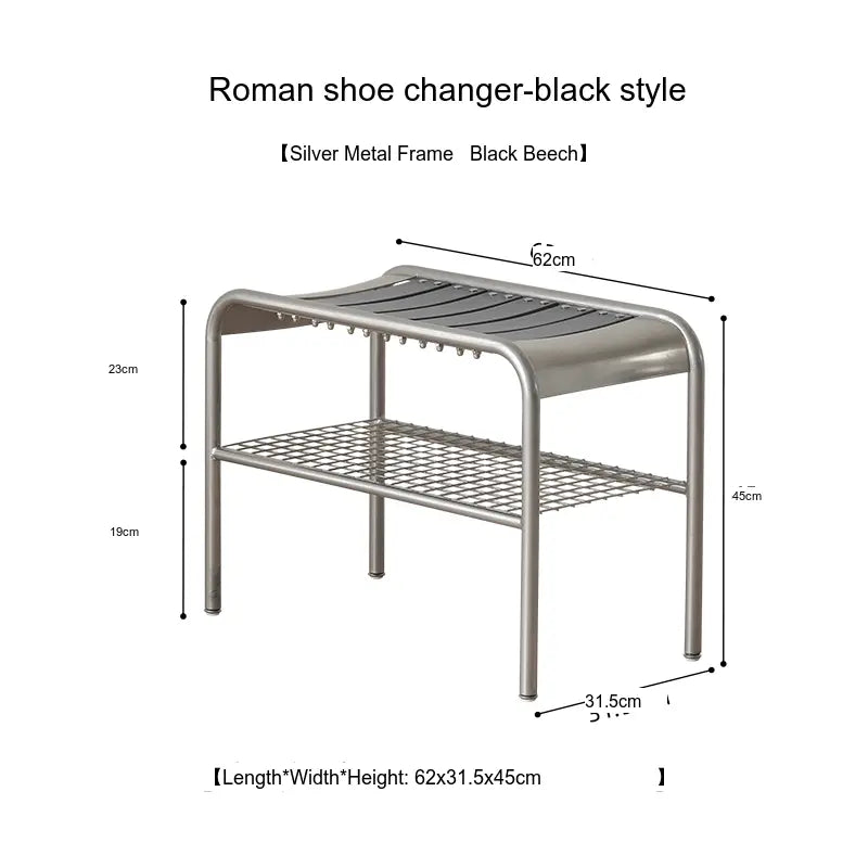 Measuring 62cm in length, 31.5cm in width, and 45cm in height, this stool is perfectly sized to fit in compact spaces, making it ideal for smaller homes or apartments. Moreover, it includes an intelligent under-seat storage solution with a metal grid rack to store shoes, bags, or other accessories, ensuring your entryway or dressing room remains tidy and organized while effortlessly combating clutter.