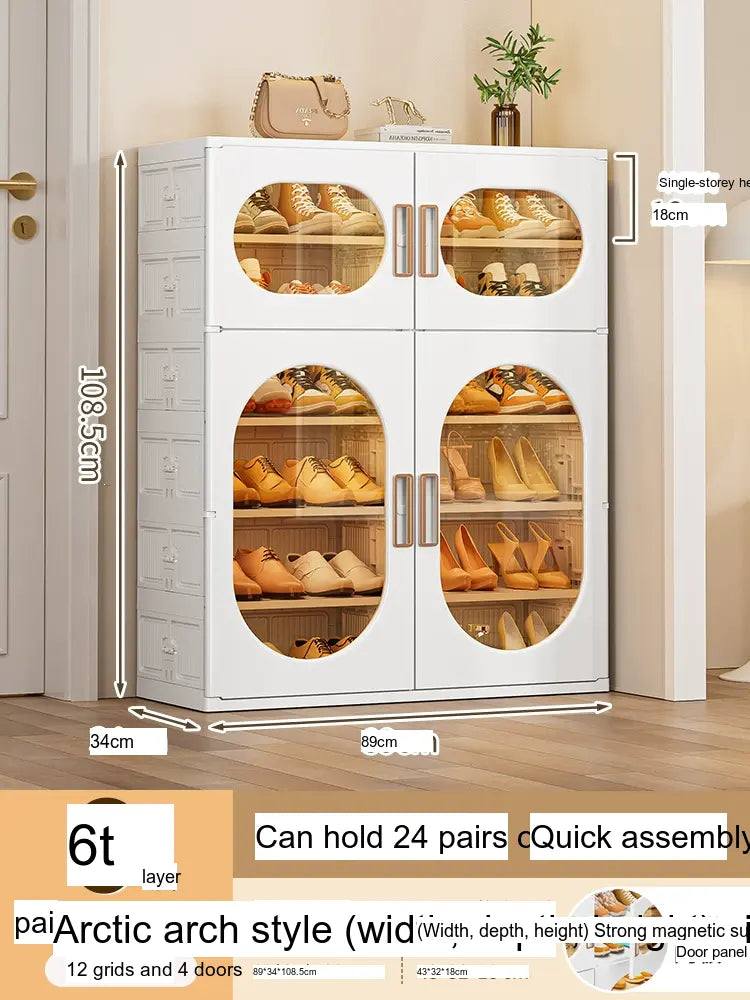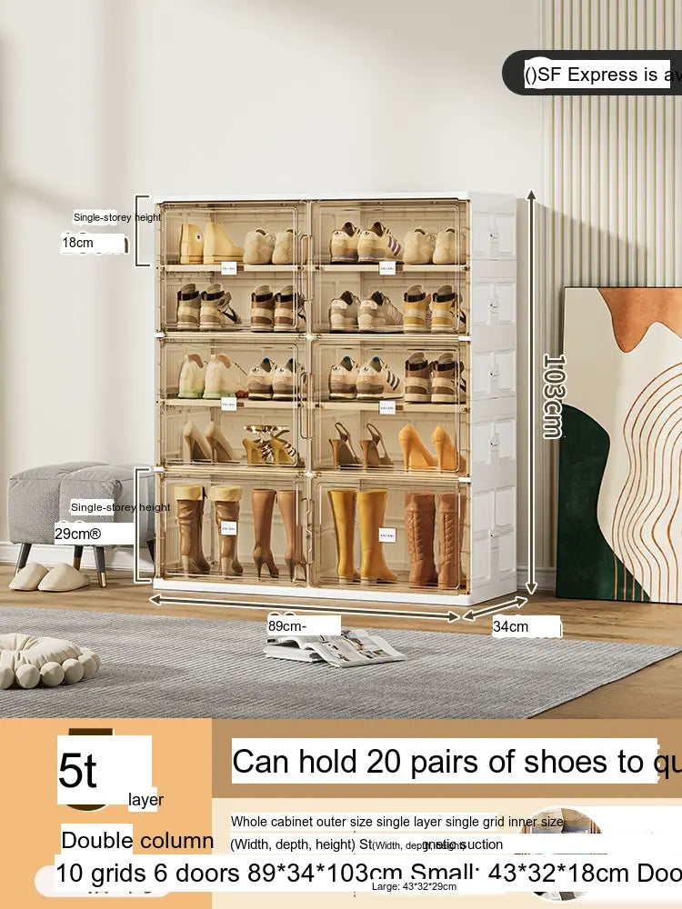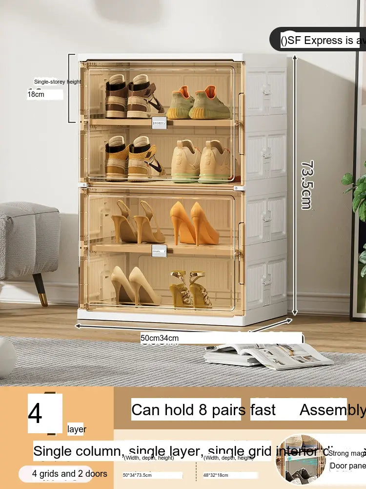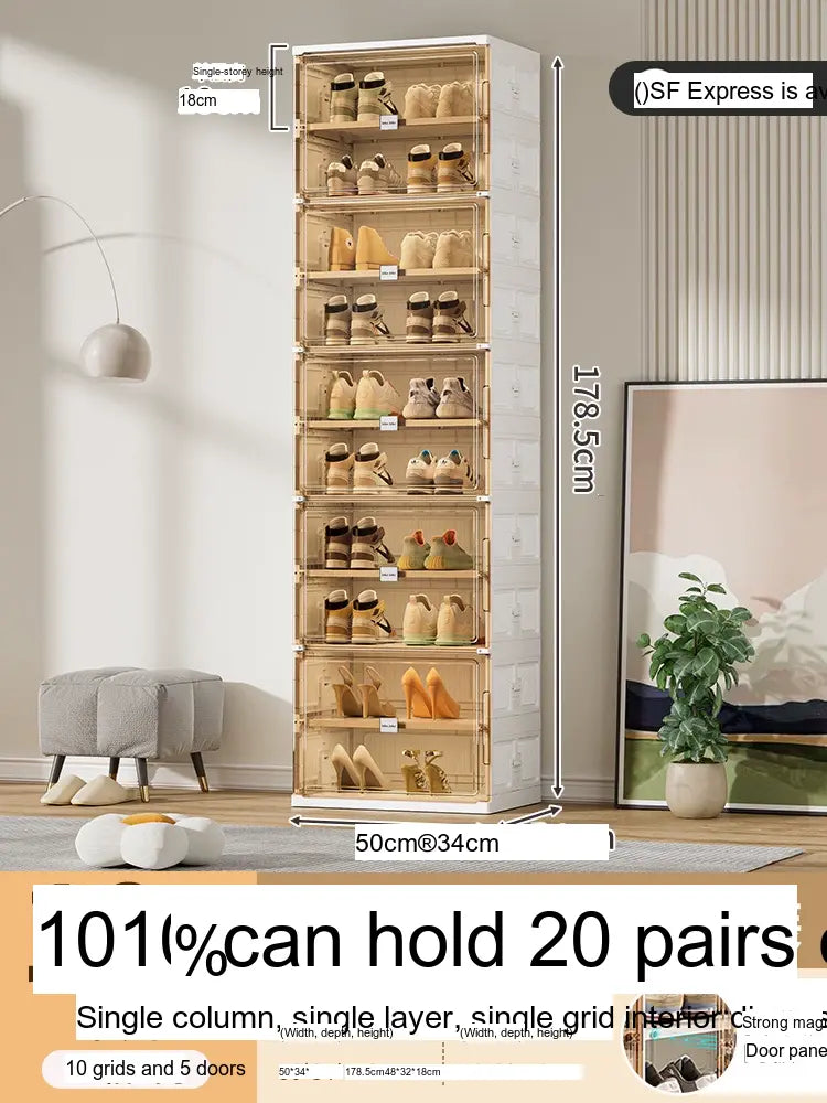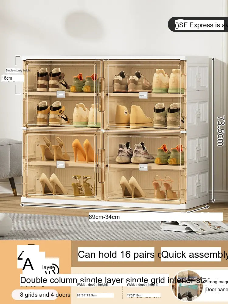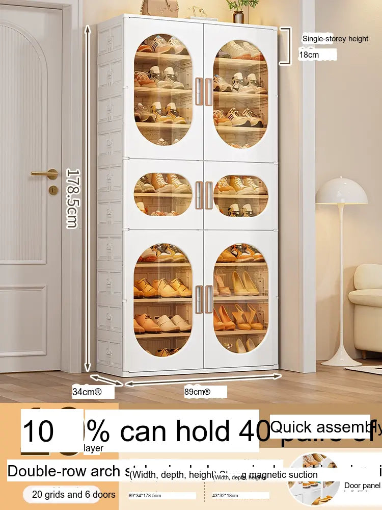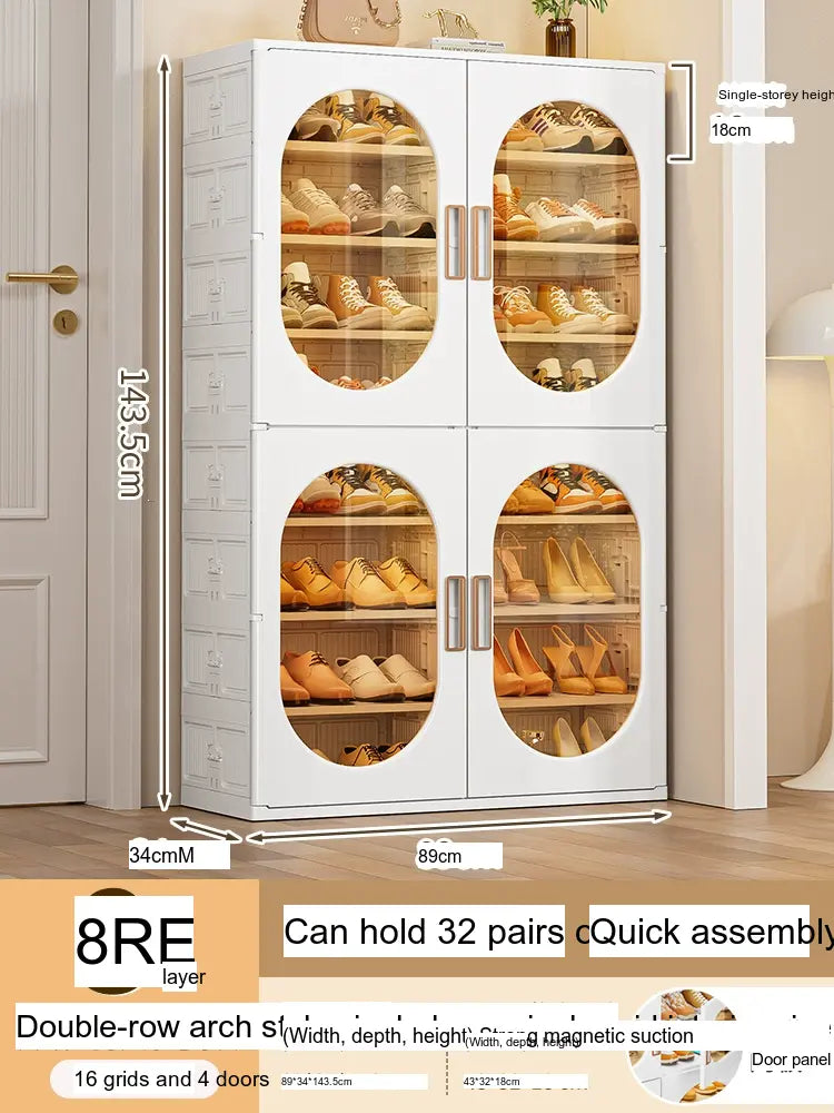 The cabinet includes strong self-closing doors that not only provide easy access to your favorite pairs but also serve to keep dust and moisture at bay. This thoughtful design maintains the cleanliness and longevity of your shoes, ensuring they remain fresh and ready for use whenever you need them.