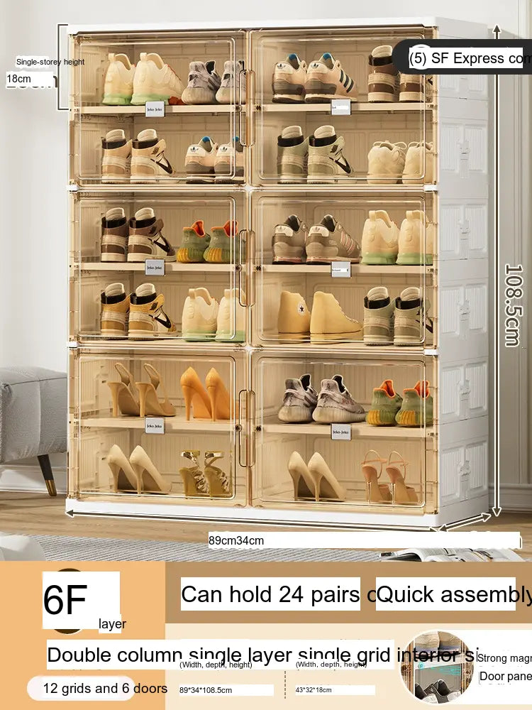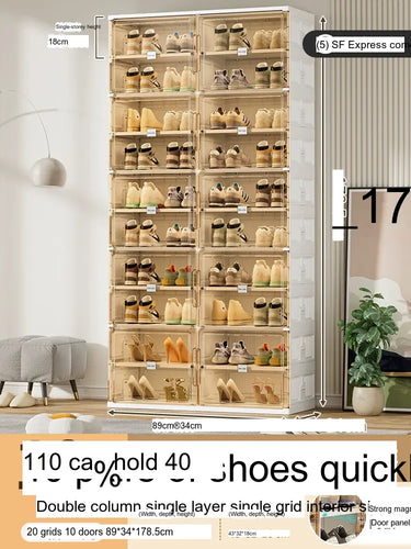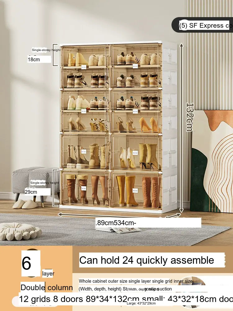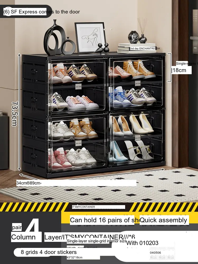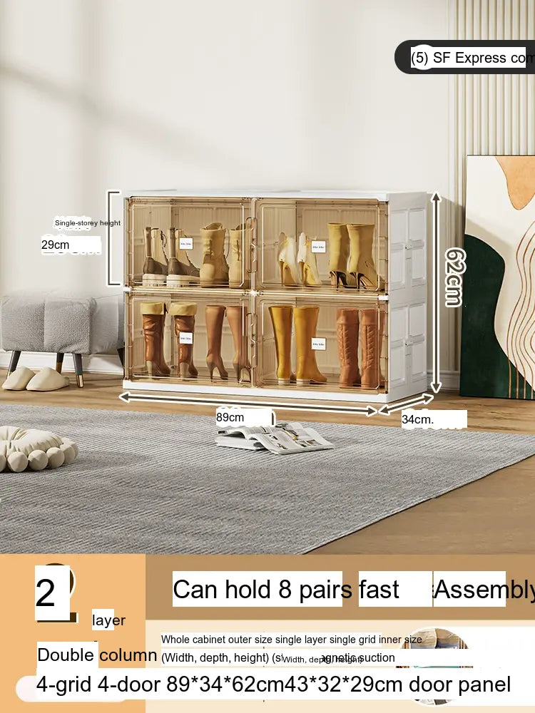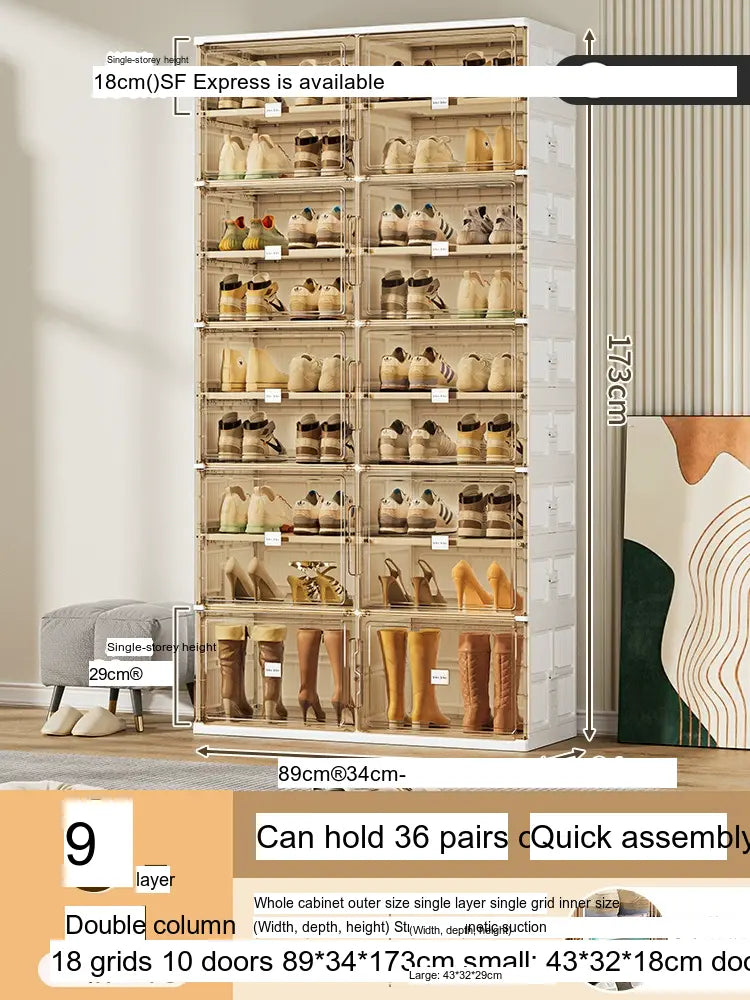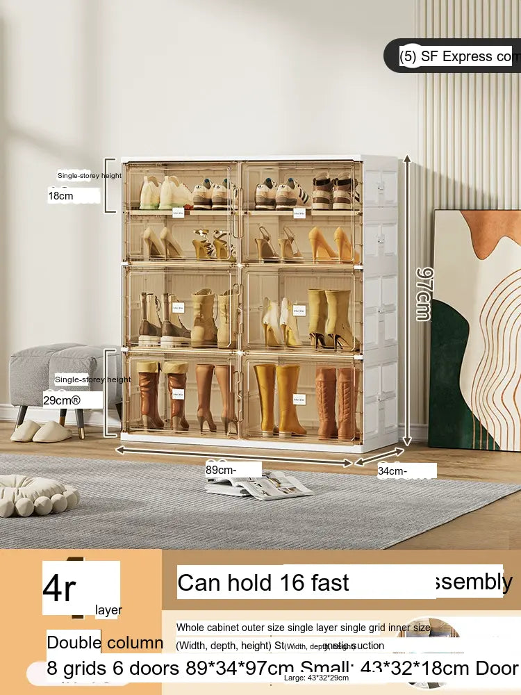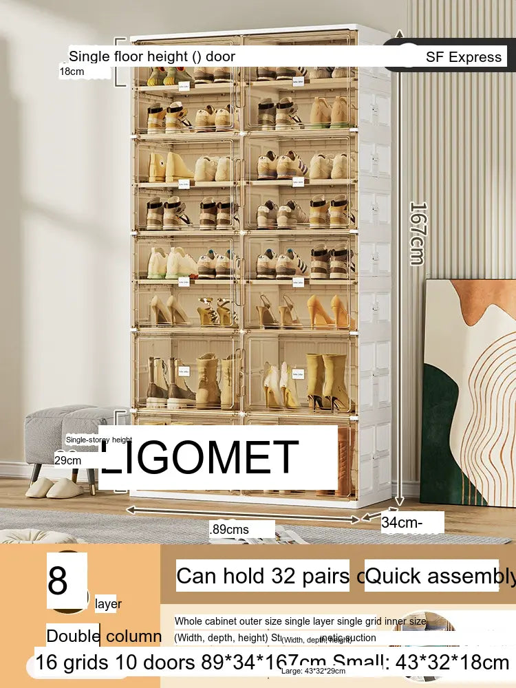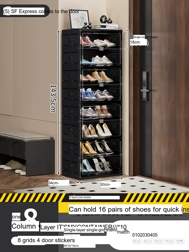 The cabinet includes strong self-closing doors that not only provide easy access to your favorite pairs but also serve to keep dust and moisture at bay. This thoughtful design maintains the cleanliness and longevity of your shoes, ensuring they remain fresh and ready for use whenever you need them.