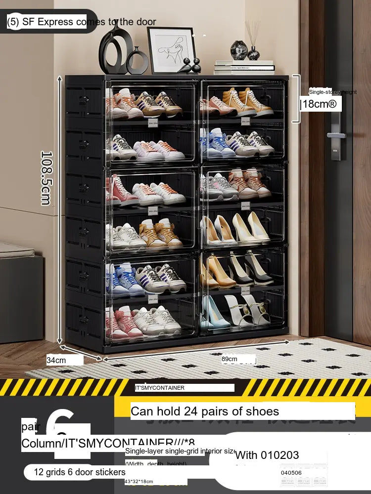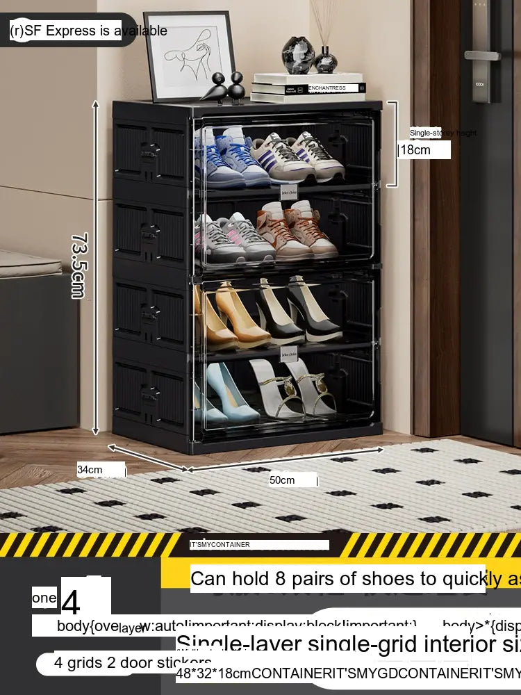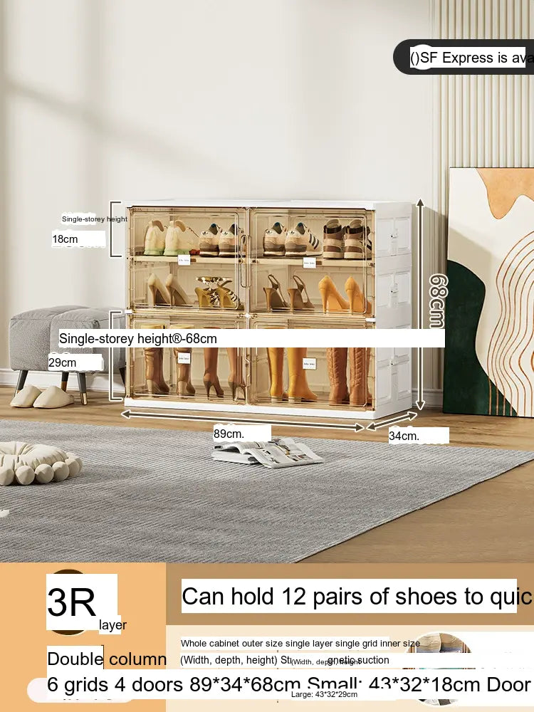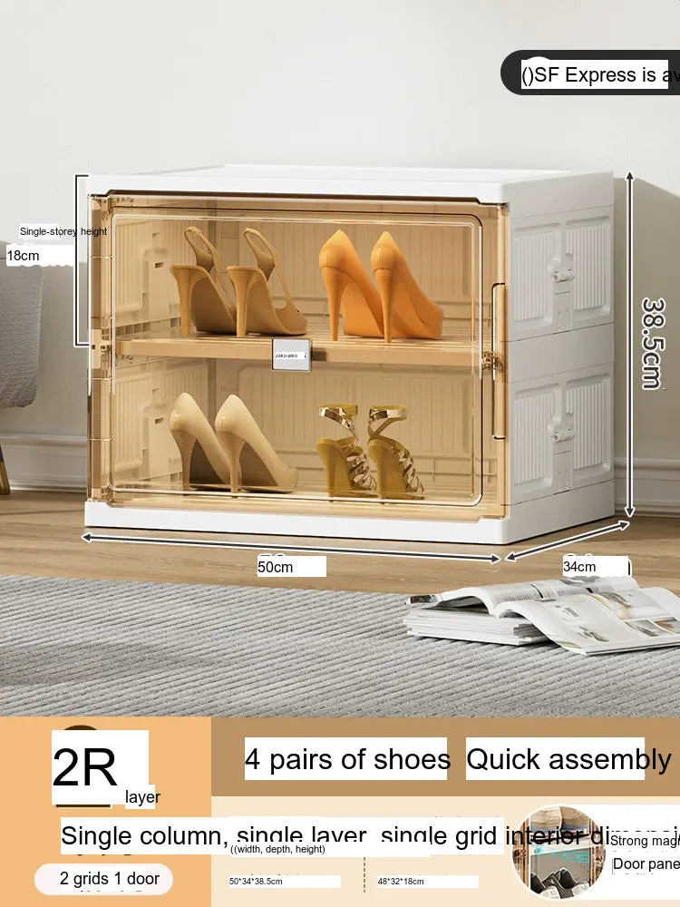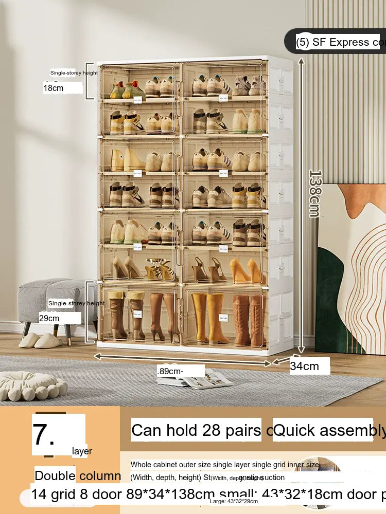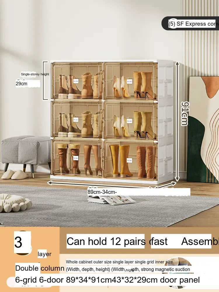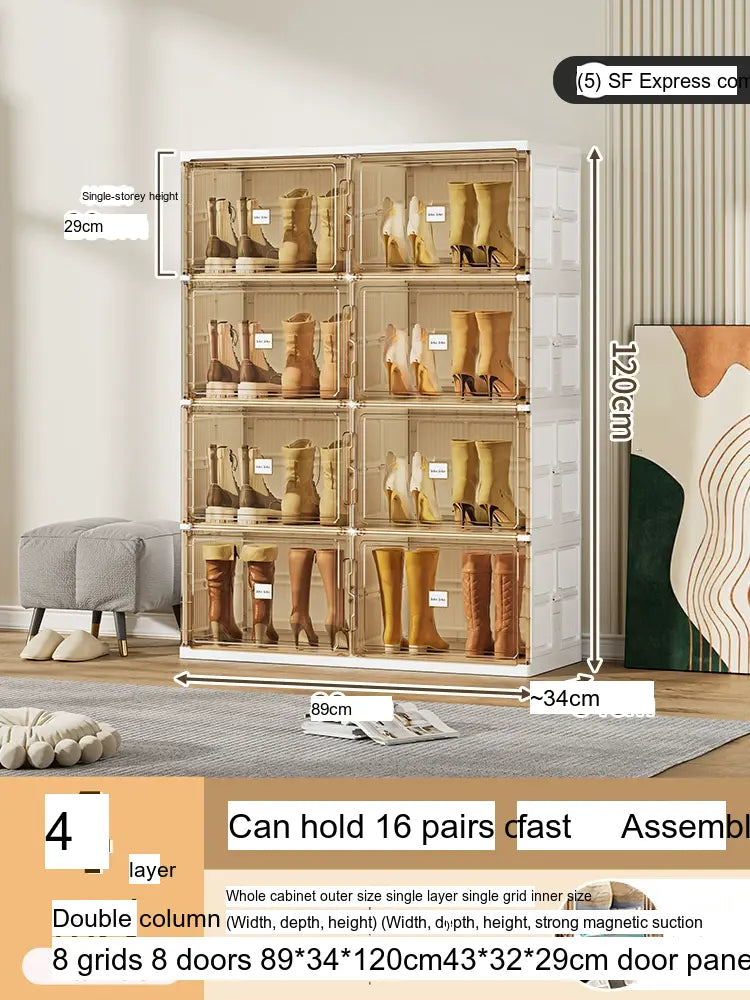 The cabinet includes strong self-closing doors that not only provide easy access to your favorite pairs but also serve to keep dust and moisture at bay. This thoughtful design maintains the cleanliness and longevity of your shoes, ensuring they remain fresh and ready for use whenever you need them.