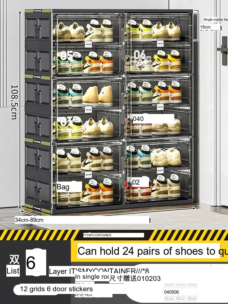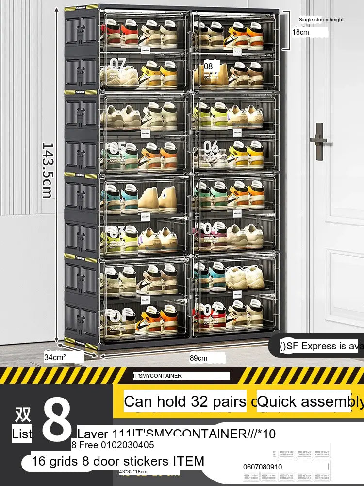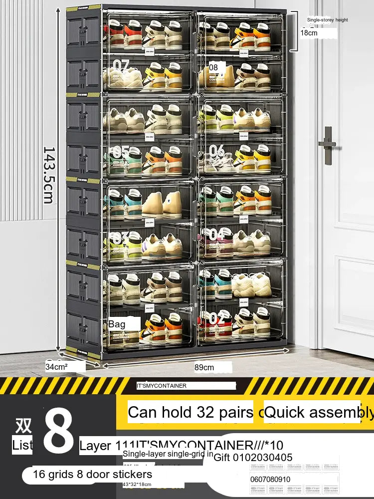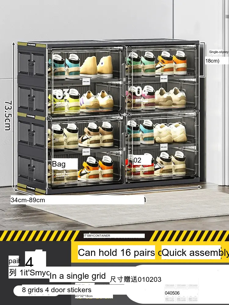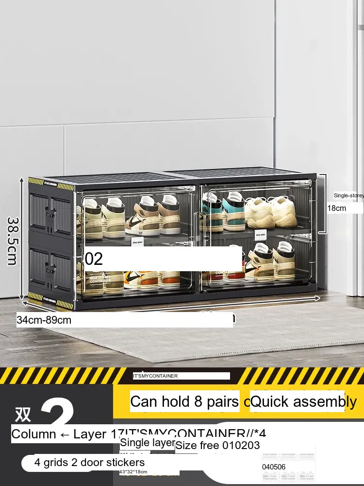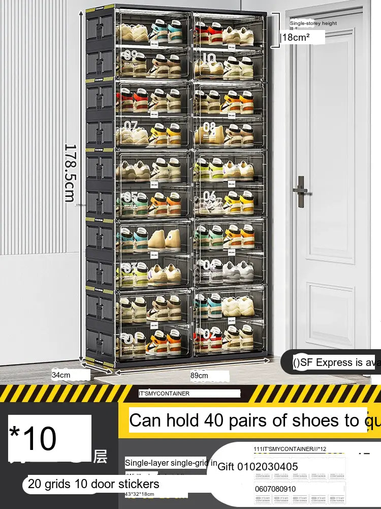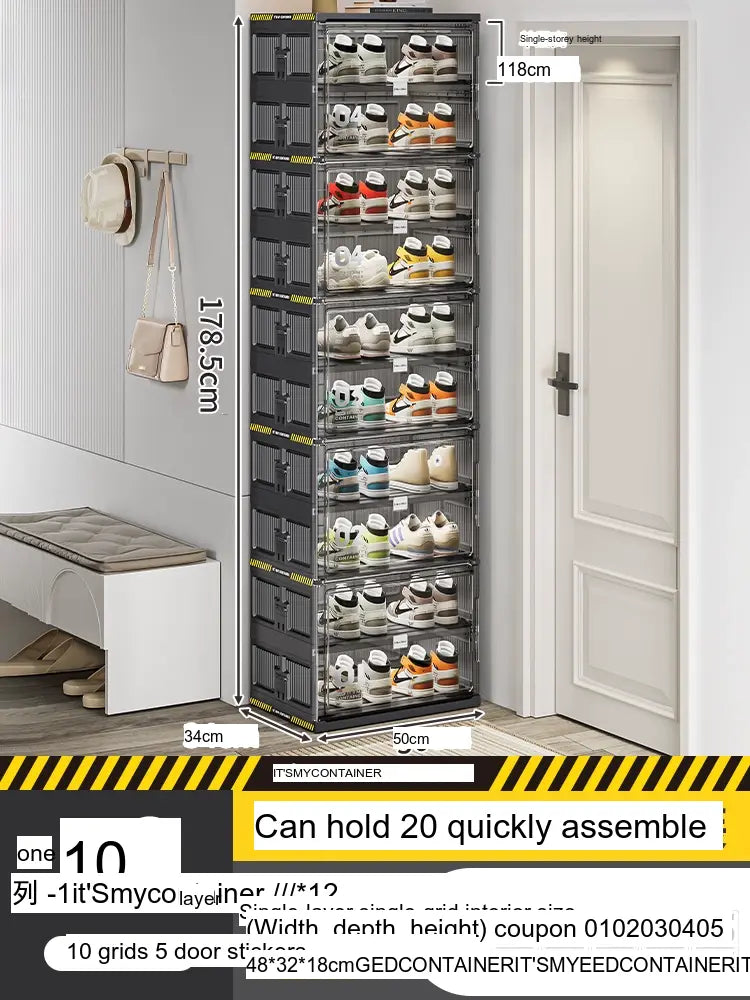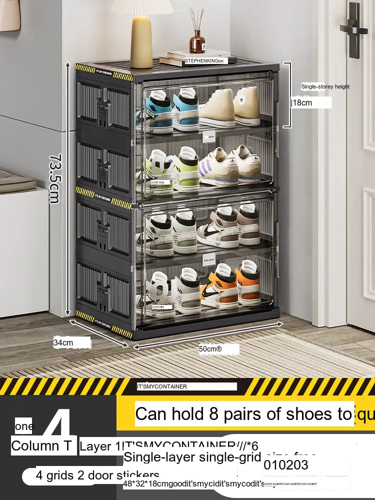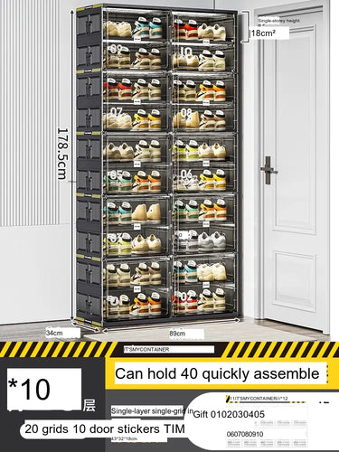 From compact two-tier units holding up to 8 pairs to tall ten-tier cabinets accommodating over 40 pairs, this design offers versatile storage for sneakers, heels, boots, and more. The transparent panels make it easy to quickly find your desired pair while keeping shoes protected from dust.