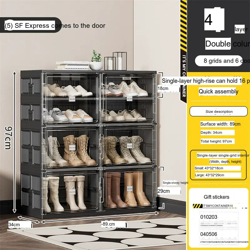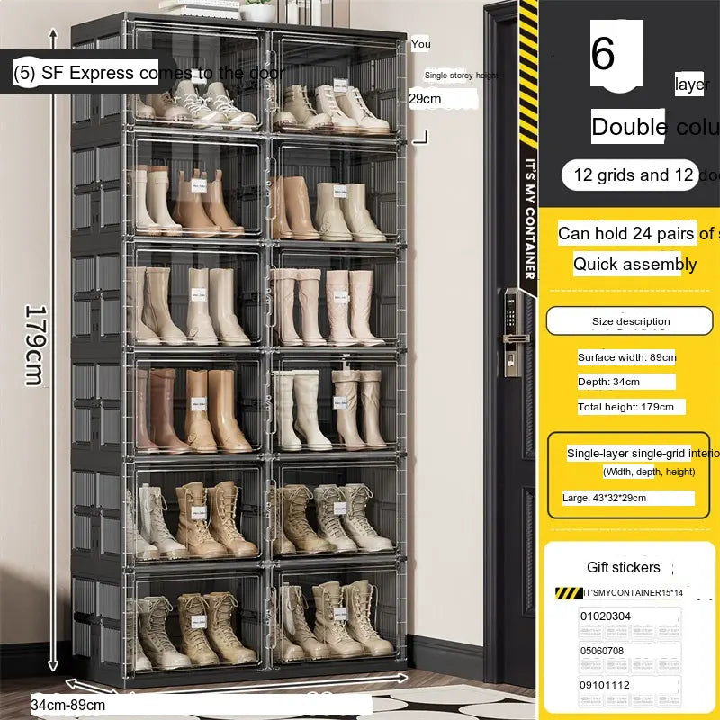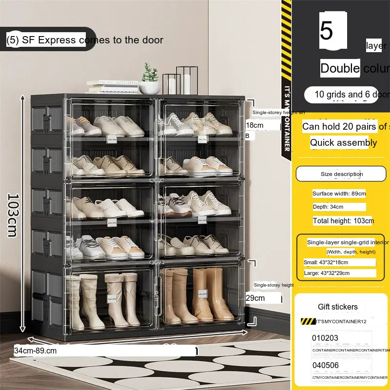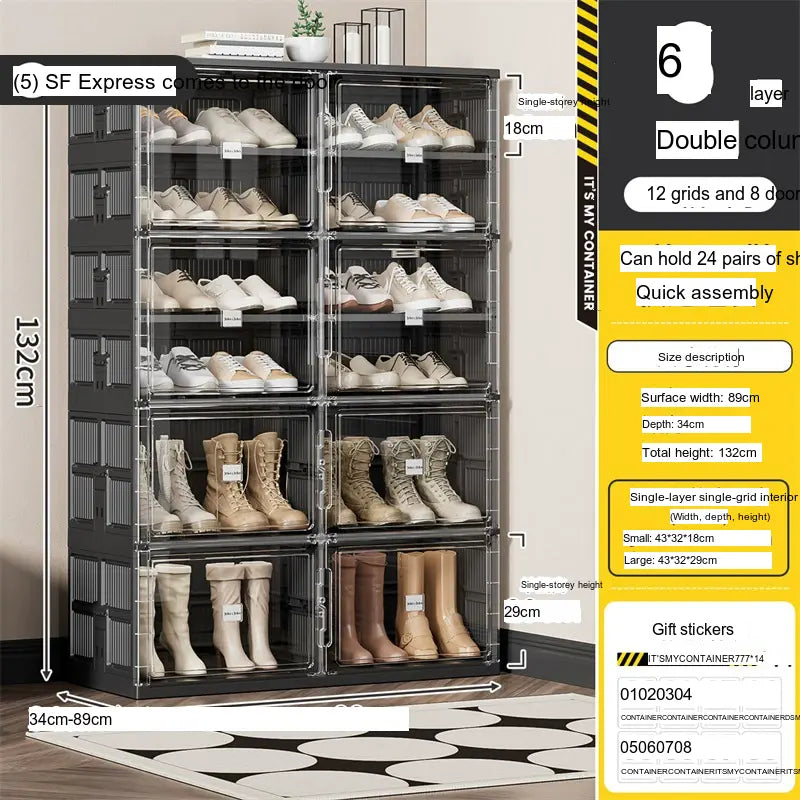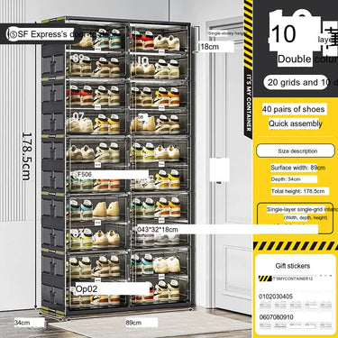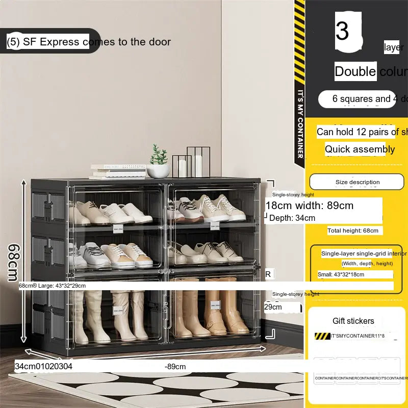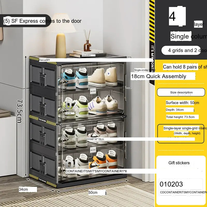 - Transparent Elegance: The transparent front panels are made of high-quality, impact-resistant materials, allowing you to view your shoe collection effortlessly. This unique feature makes finding your desired pair quick and easy, eliminating the hassle of rummaging through piles of shoes.