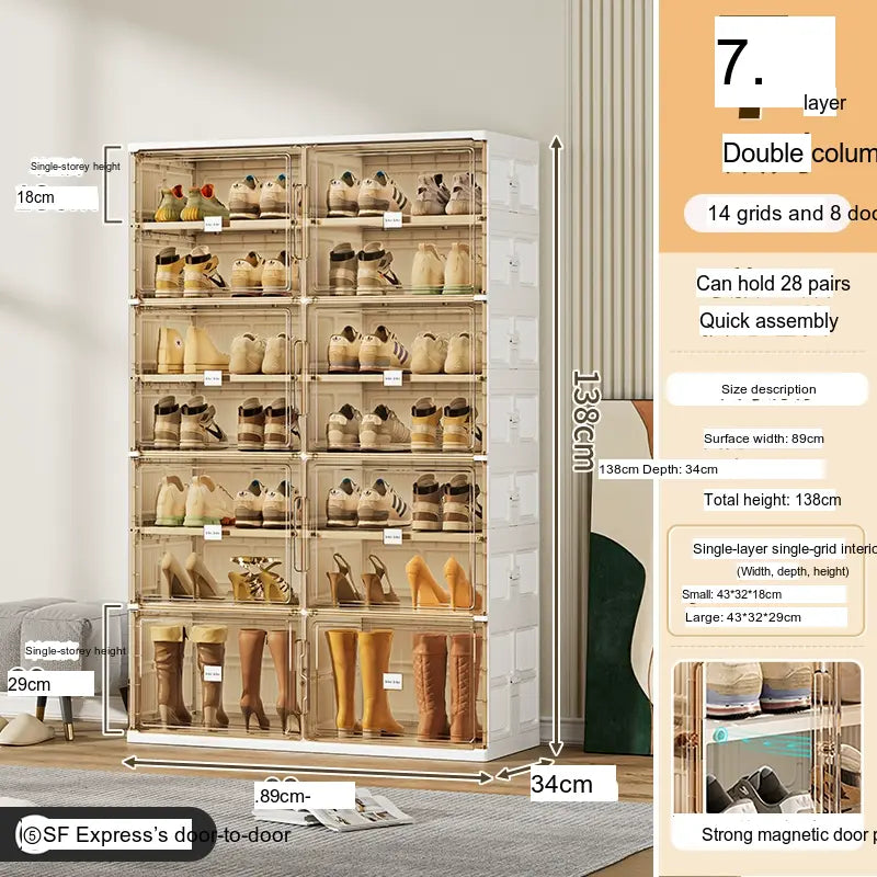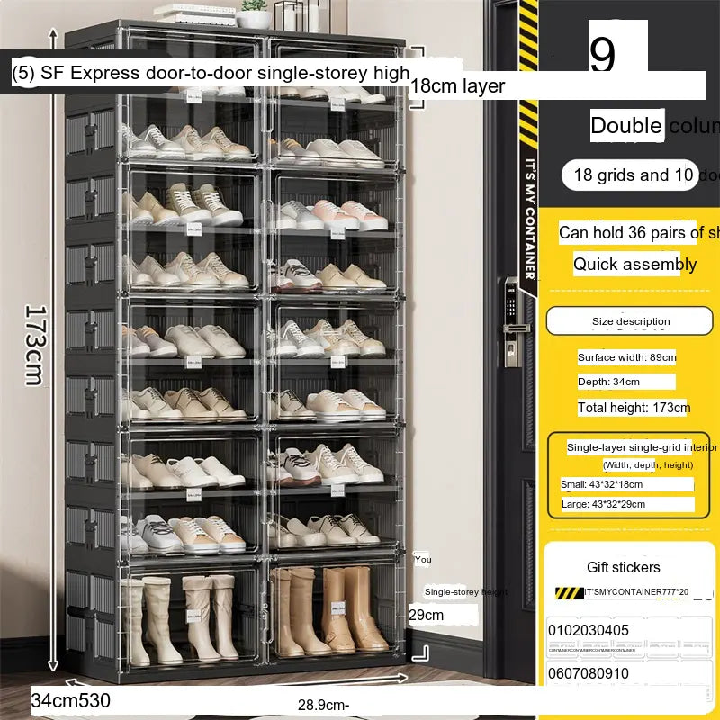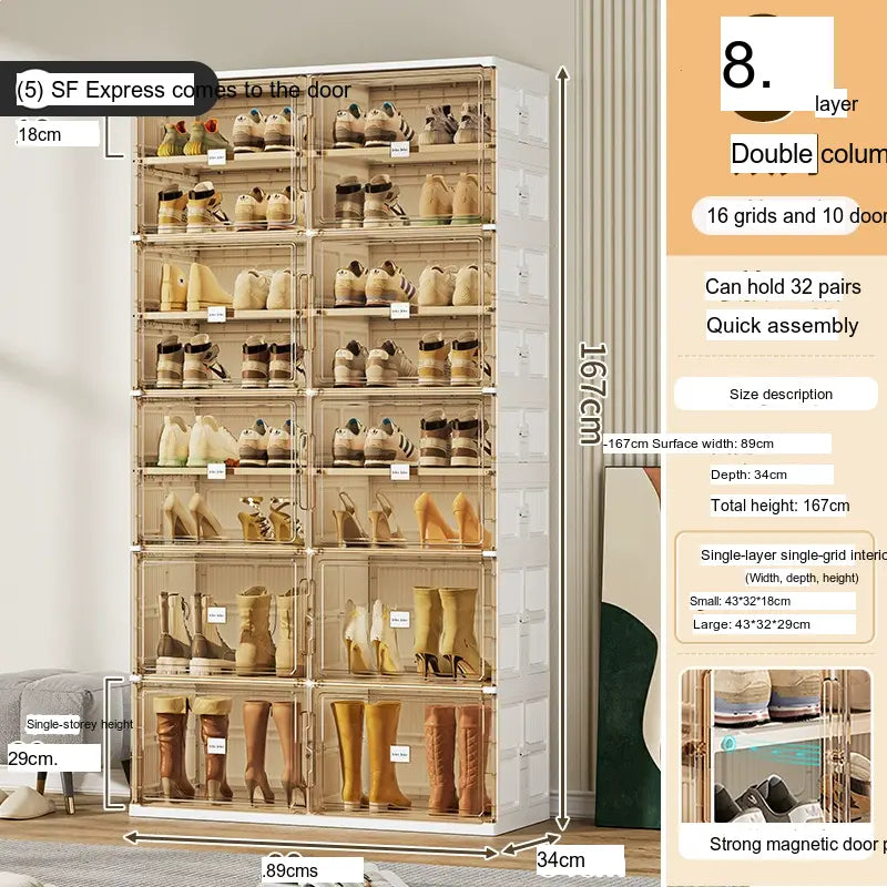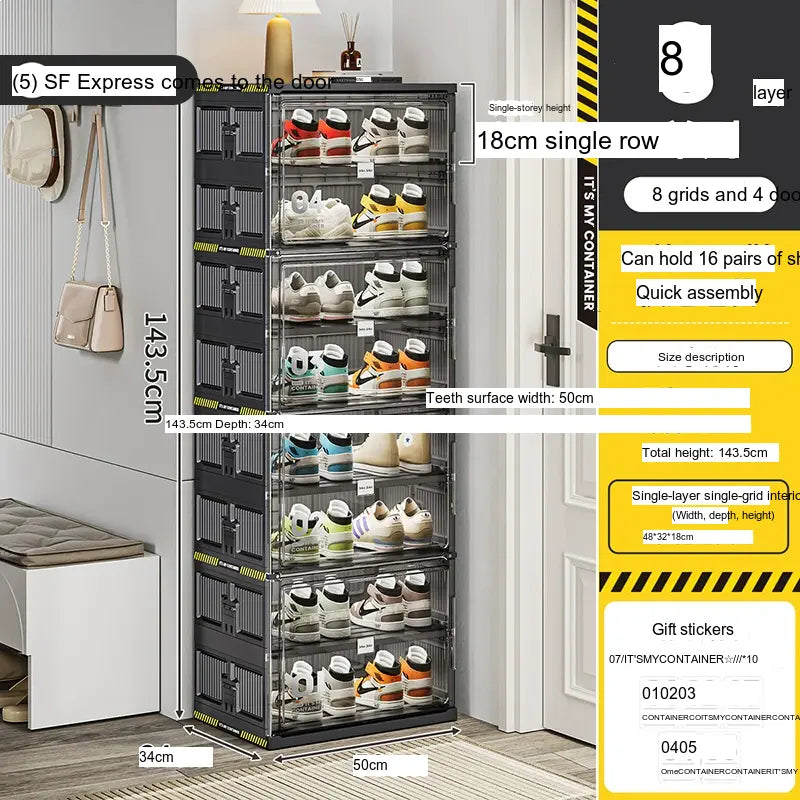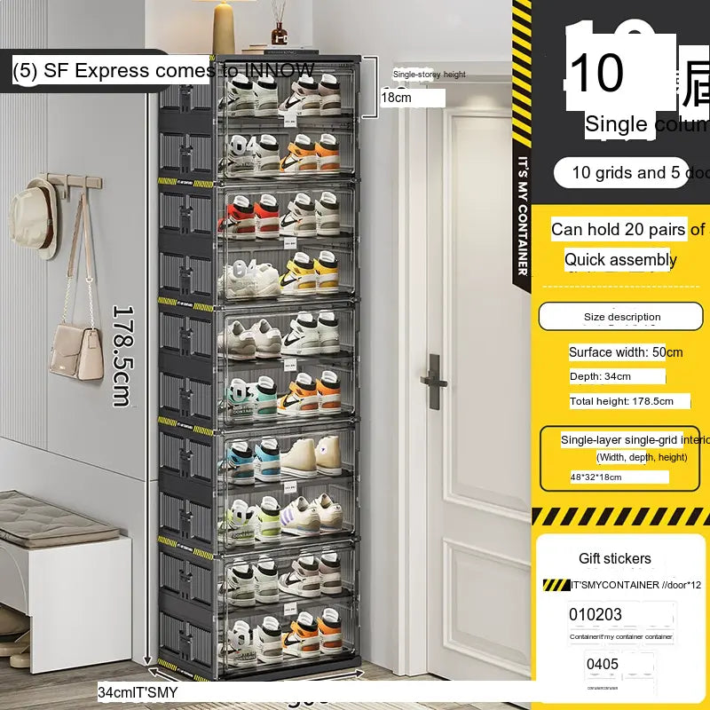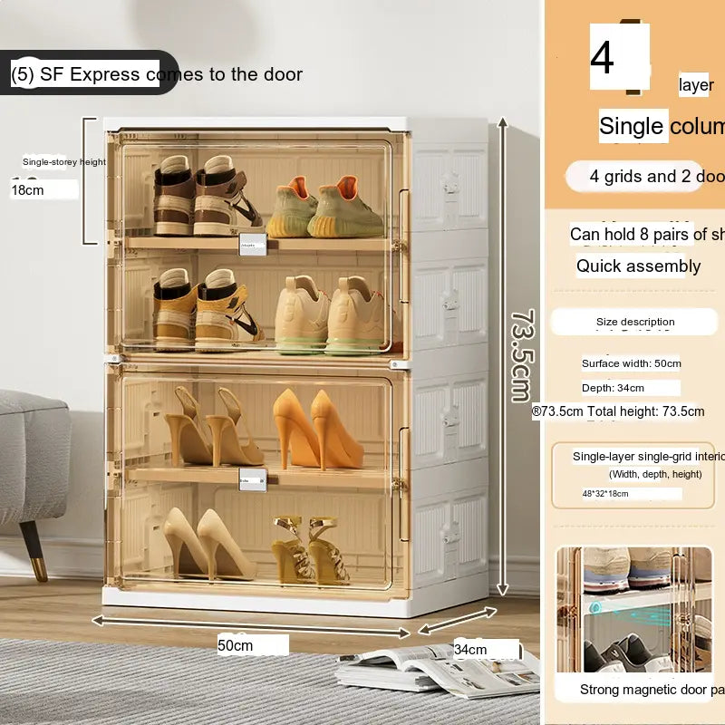 - Transparent Elegance: The transparent front panels are made of high-quality, impact-resistant materials, allowing you to view your shoe collection effortlessly. This unique feature makes finding your desired pair quick and easy, eliminating the hassle of rummaging through piles of shoes.