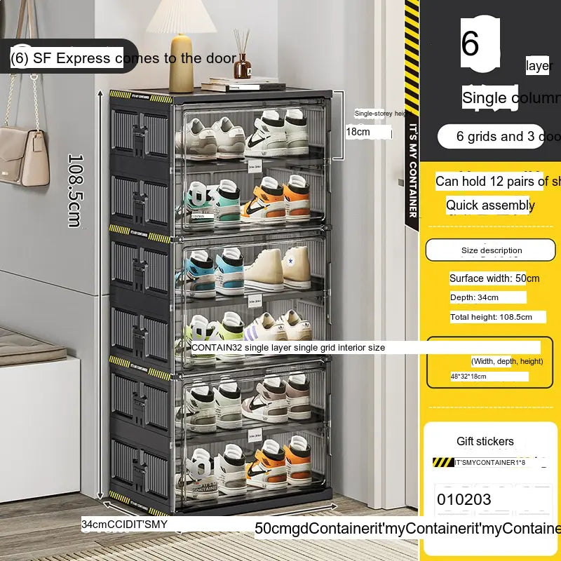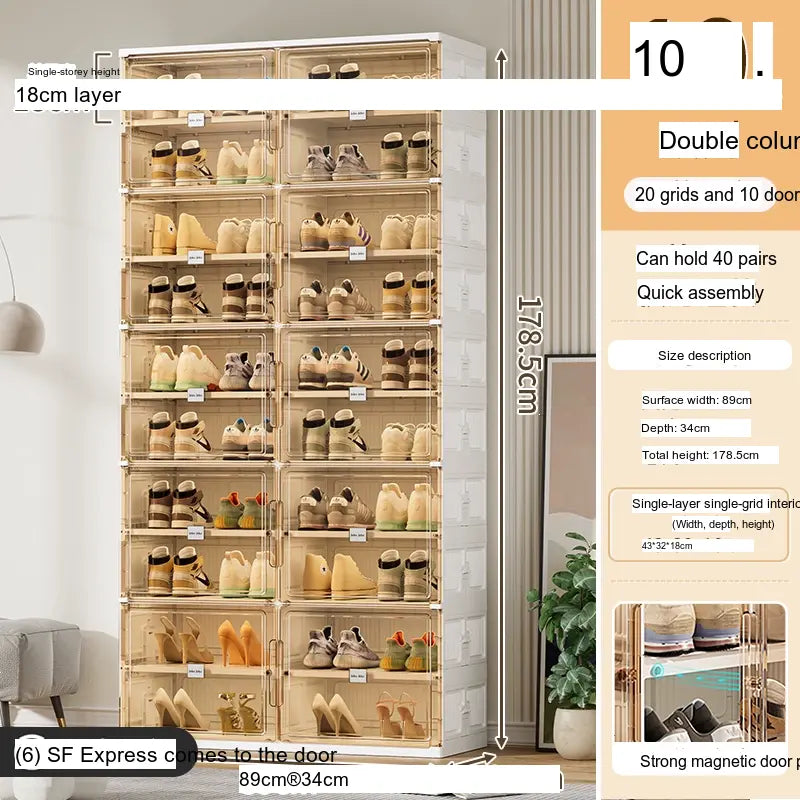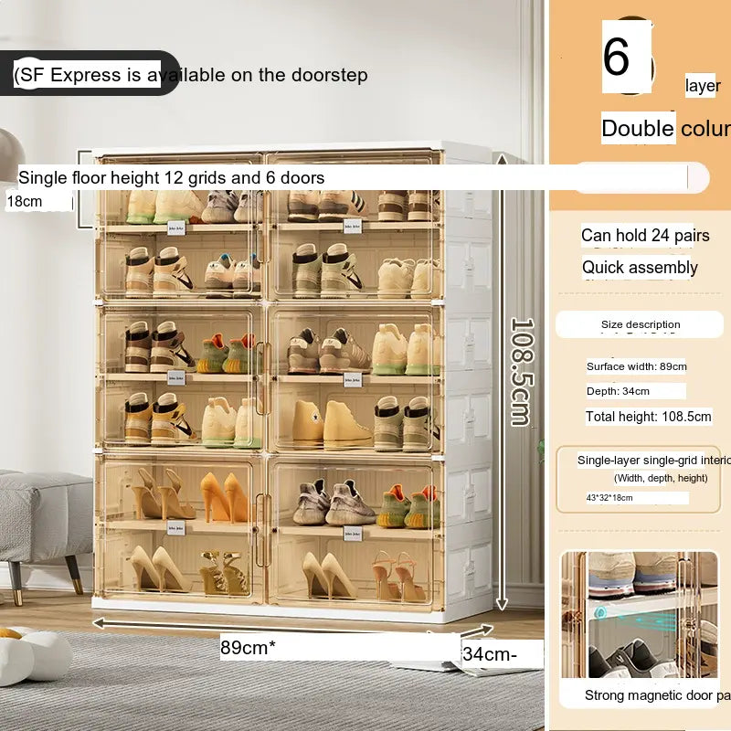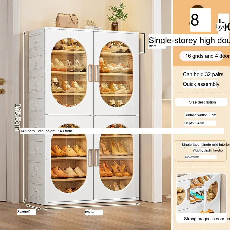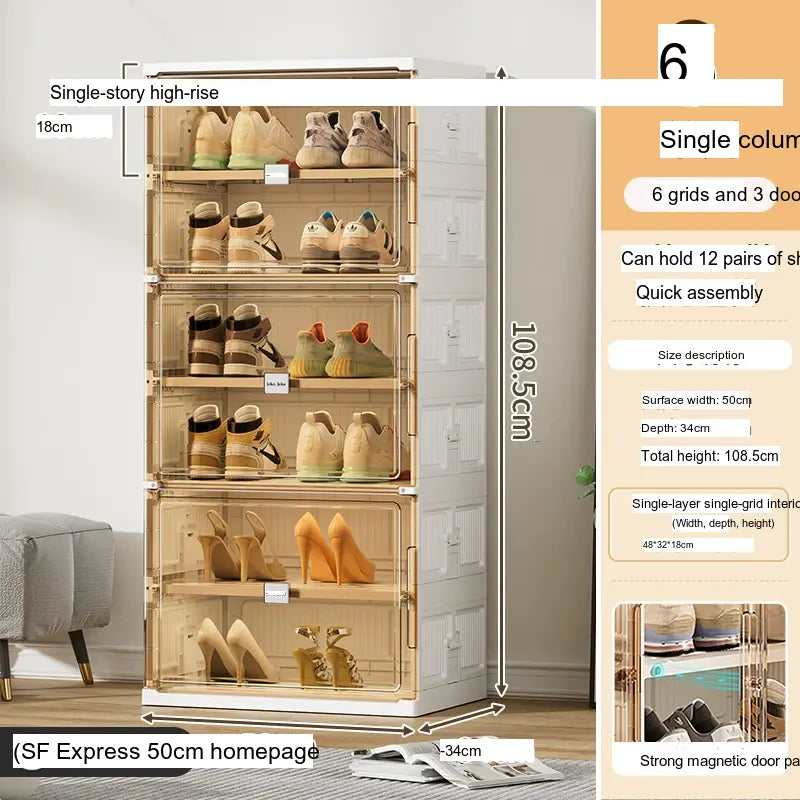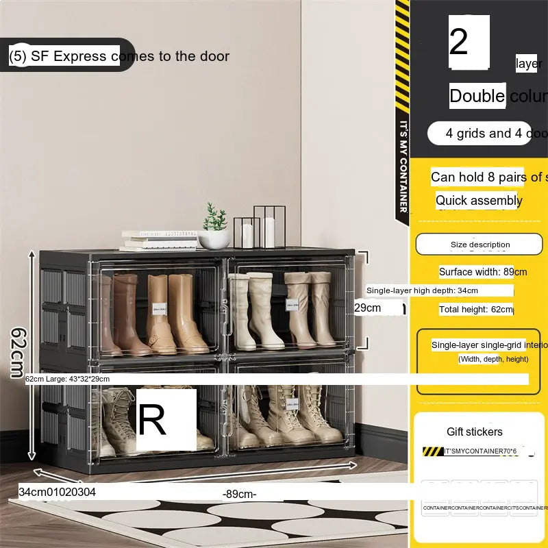 Enhance your home’s organization with the JEKOJEKO Elowen Elegant Transparent Folding Shoe Cabinet. Marrying functionality with sophisticated design, this shoe cabinet is an essential piece for any modern living space. Don't let shoe disarray disrupt your lifestyle. Make the smart choice with the Elowen cabinet and take the first step toward an organized and stylish home!
