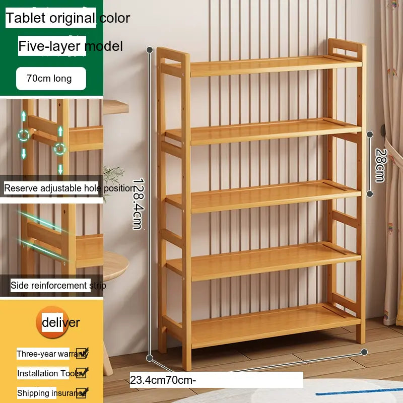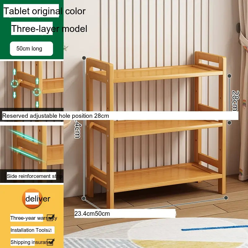This storage rack is not only practical but also a stylish addition to your décor. Its sleek lines and natural bamboo finish allow it to blend seamlessly with any aesthetic, whether you're aiming for a modern chic look or a classic touch. The open shelves promote organization while providing an attractive display for items.