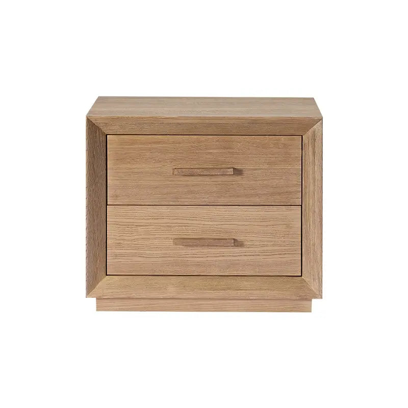 The FOUNDHOME Emerson bedside table boasts a minimalist design that is both classy and versatile. It features a sleek, unadorned silhouette complemented by gentle, rounded corners, allowing it to fit seamlessly with various bedroom themes, from contemporary to traditional. The two-drawer layout offers a refined solution for maintaining an organized bedside, making clutter a thing of the past. The simplicity of the design not only enhances the beauty of your bedroom but also draws attention to its functional elements, creating a space that feels open and inviting.